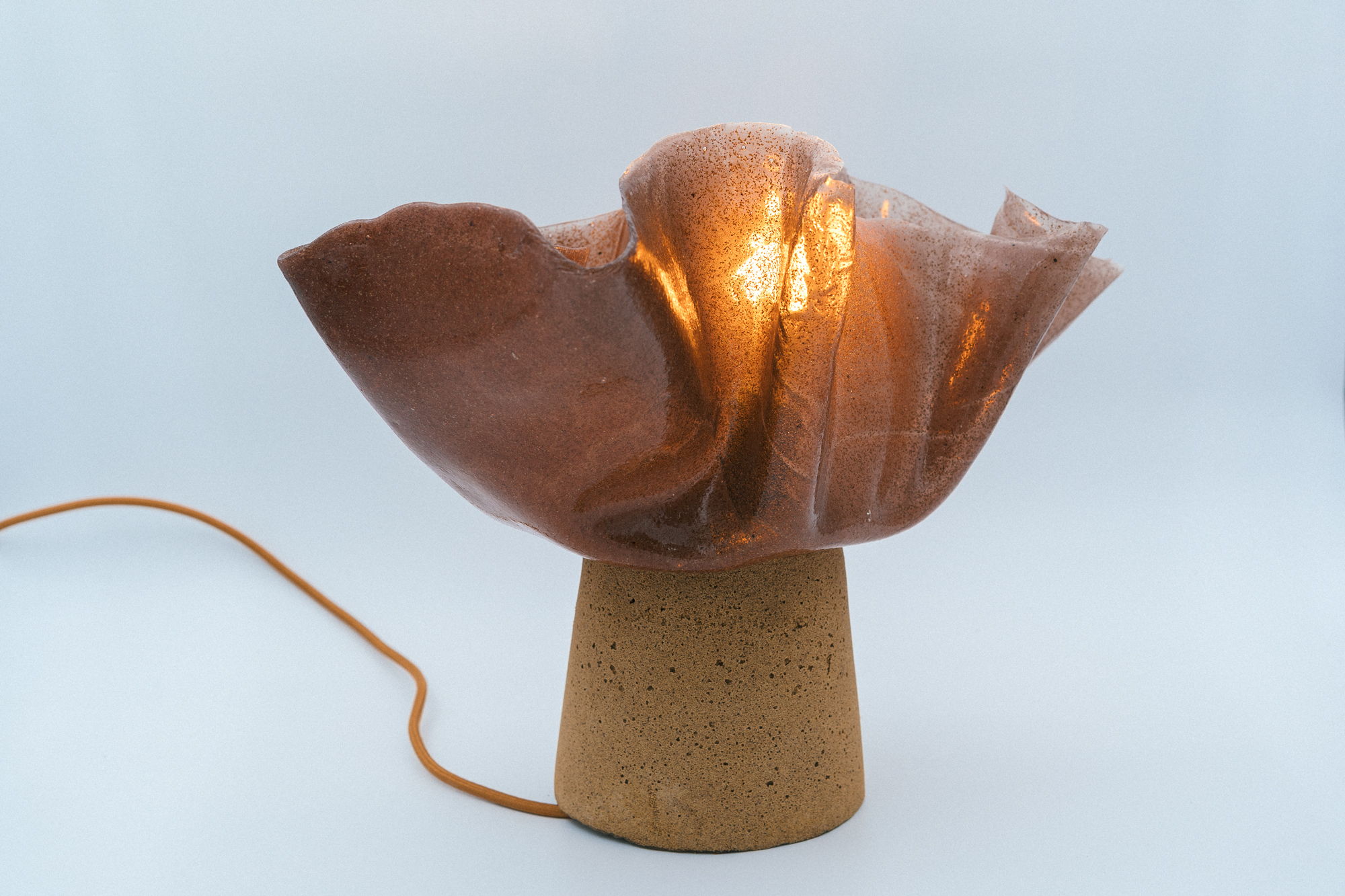 The basic mixture of ground olive stone with other natural ingredients can be formed into a wide variety of textures and appearances, depending on the amount and type of stone material used - granulate, powder or flour. The material can appear wood-like to transparent and is remarkably malleable. The biocomposite is available in different colors thanks to a dyeing process using only natural sources such asturmeric, avocado, indigo, and cochineal.