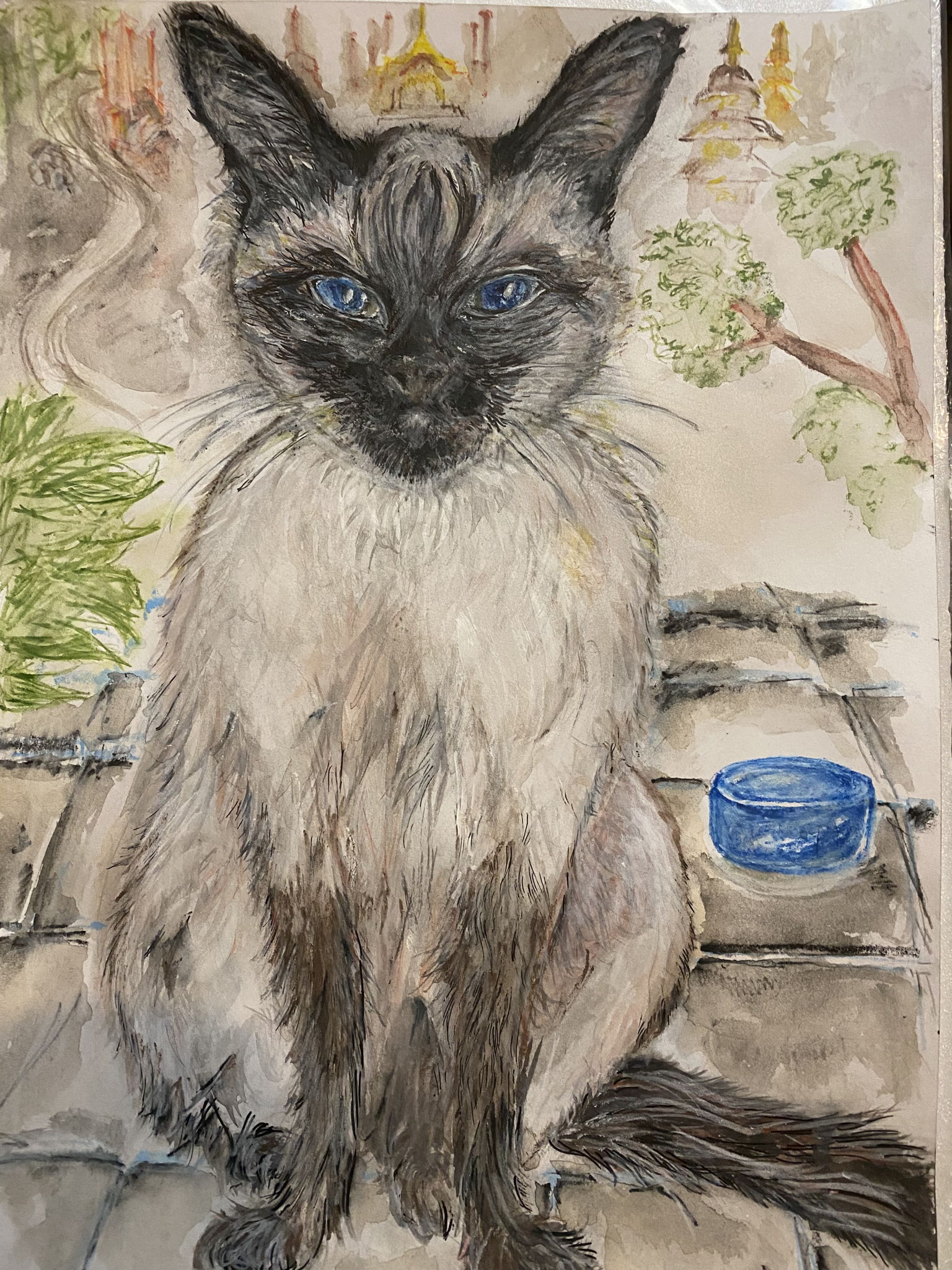 可愛い飼い猫らを描きました。