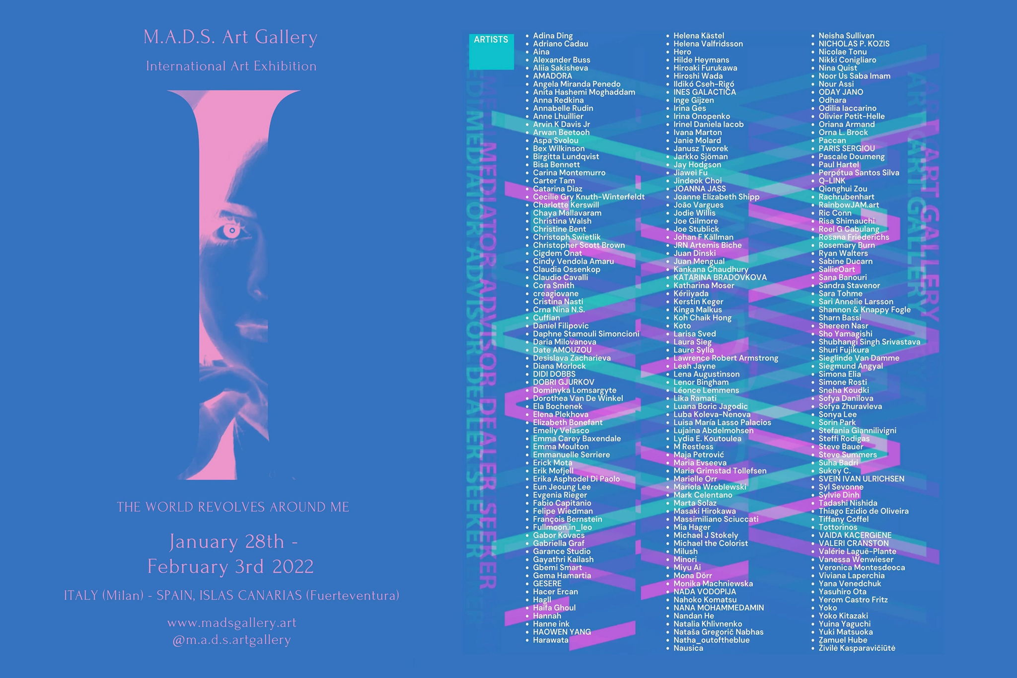 M.A.D.S. ART GALLERY has opened the exhibition I THE WORLD REVOLVES AROUND ME, which will be held in Milan, Italy and Canary Islands, Spain. 5 graphic works are exhibited.