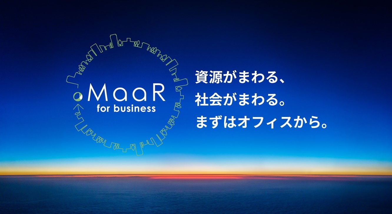 『MaaR for business』は、その第一歩です。現在、オフィスから排出されるほとんどすべてのごみは、焼却処分されていますが、特定のごみを回収ボックスに入れるという毎日のなにげないアクションによって、ごみは資源となり、新たなモノとして手元にもどってくるという資源循環を実現できます。また、サービスの一部として利用できる環境配慮型製品や、環境意識醸成に繋げる教育資料を社内で活用してもらうことにより、環境問題やそれに対する取り組みへの興味を持ってもらい、各従業員の自分事化を深めることができます。そんな体験と学びを含めてコーディネートし、オフィスのサステナブルな活動を促進させる、従業員参加型の資源循環サービスが『MaaR for business』です。この輪が広がれば広がるほど、より大きく資源も、社会も、回っていく。やがて大きな資源循環プロジェクトへと成長していき日本からはじまるグローバル規模のサーキュラーエコノミーの実現を目指します。