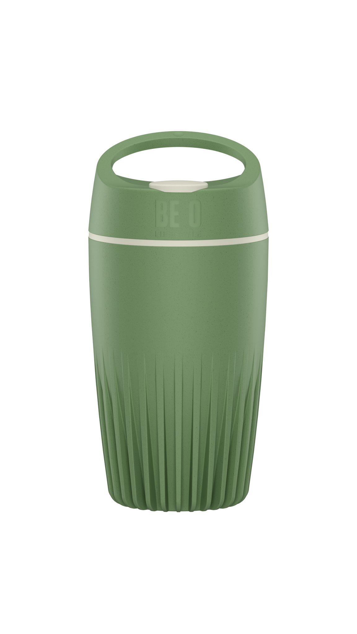 BE O Lifestyle is a company that makes everyday products, made from plants. The BE O cup, their second product, is made from use plant-based cooking oils. this is a bio-polypropylene. This means that the petroleum component of the plastic has been replaced by a renewable resource. The BE O cup is made of a second generation bio-plastic. This means that it is not only renewable, but also a waste stream. This waste is collected from various companies in the food industry, such as restaurants.