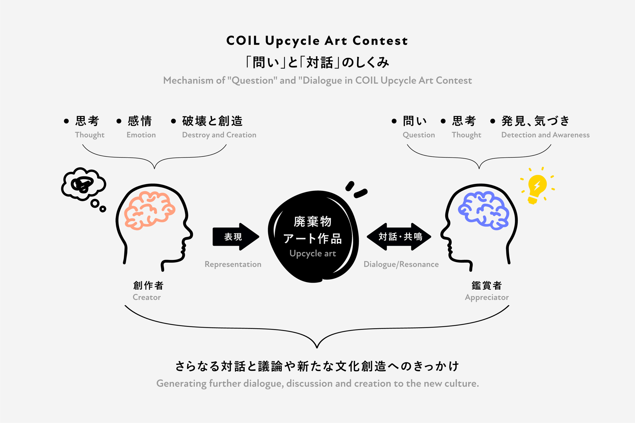 公募展のタイトルにもあるCOILという言葉には特別な意味が込められています。創造性・観察力・独自性・ライフハックという意味の他に、地域社会が抱える様々な課題に対し地域の静脈企業が