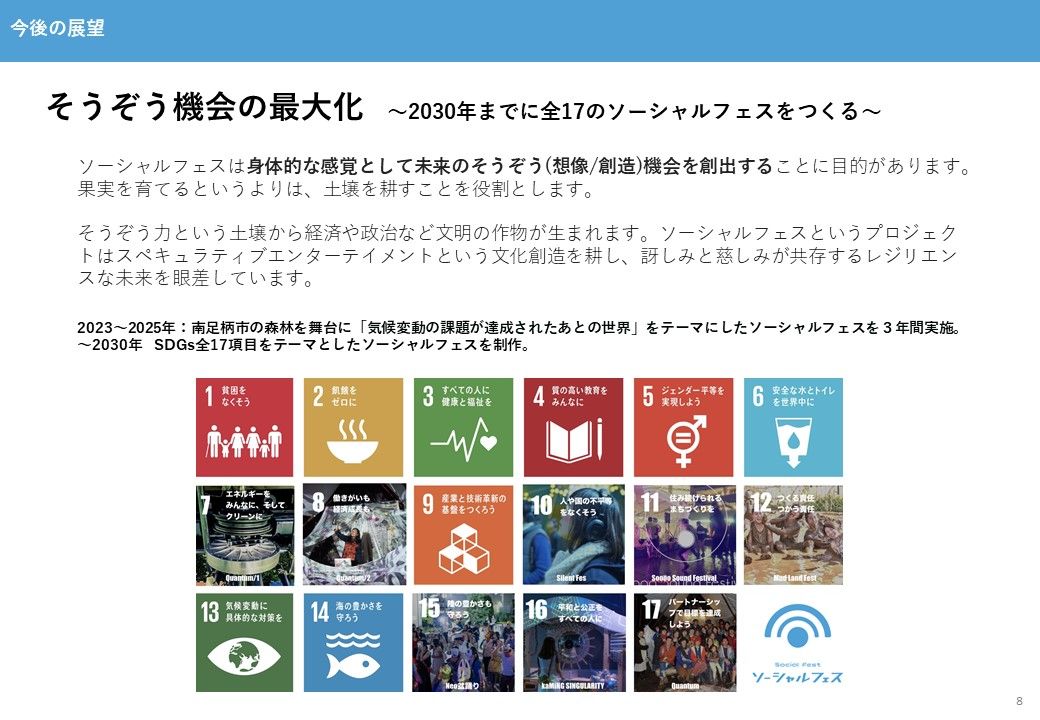 SDGsが達成された後の世界を1日限りのフェスとして共創する『ソーシャルフェス』/Social Festival:To co-create a world after the SDGs are achieved as a one-day festival.