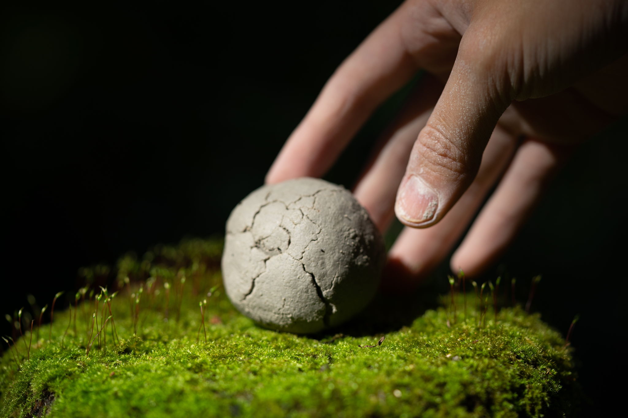The spheres are exposed to the natural environment, including rain and wind, for two months (49 days) to mix with the soil and decompose. Specifically, after cremation, the bones are crushed and powdered to 2 mm in diameter, which provides 2,000 times more surface area than if the bones were not powdered. As a result, they dissolve in the soil in about 30 years. The calcium phosphate is metabolized by microorganisms, and plants absorb phosphorus and grow. The growing plants attract insects and small animals that prey on the insects, which in turn expands the ecosystem and leads to new life beyond the species. -