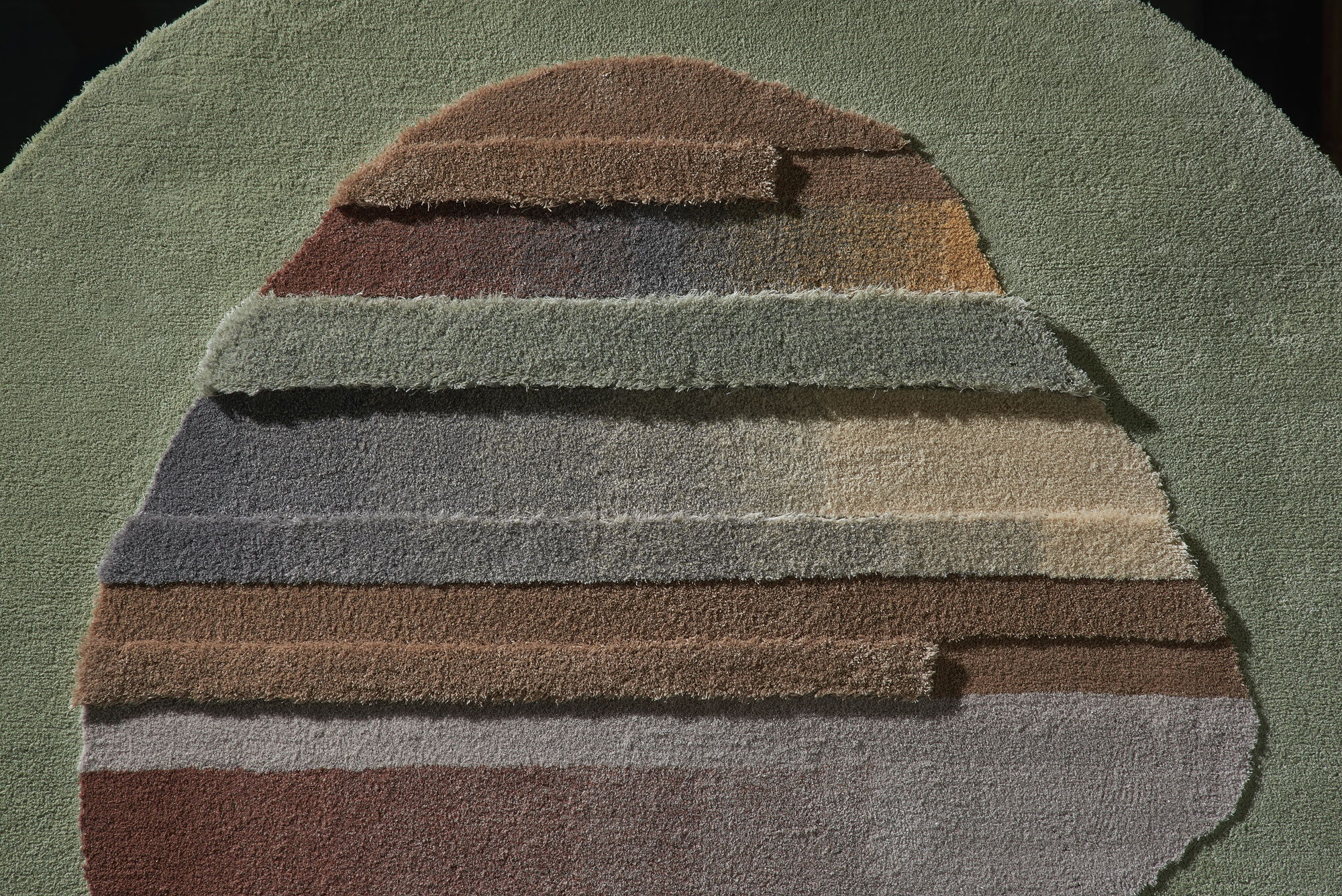 Rug collection 'Lutetia' and 'Juno' are part of the 'Ignorance is Bliss' brand. Rugs are coloured using upcycled textile dyes that originate from botanical and metal waste and by-products. Commercial textile dyeing causes a significant amount of environmental and health problems due to the chemicals used in the process whereas natural dyeing is rarely employed on an industrial scale. Drinking water supply and agriculture industries are the main waste suppliers for the collection. Leftovers of mostly organically grown plants do not contain toxic additives as they are intended for use in the food and pharmaceutical industries. Flax is versatile, cost-effective, resilient, and its cultivation requires far less water and pesticides than cotton. The 'Ignorance is Bliss' rug collection is made from linen; a deliberate choice as it is a durable, resistant, and hypoallergenic material. At the moment, yarns are hand-dyed with 9 natural colours that have been developed from waste. 'Ignorance is Bliss' rugs are designed with great detail and hand-tufted by skilled, craft-minded manufacturers.