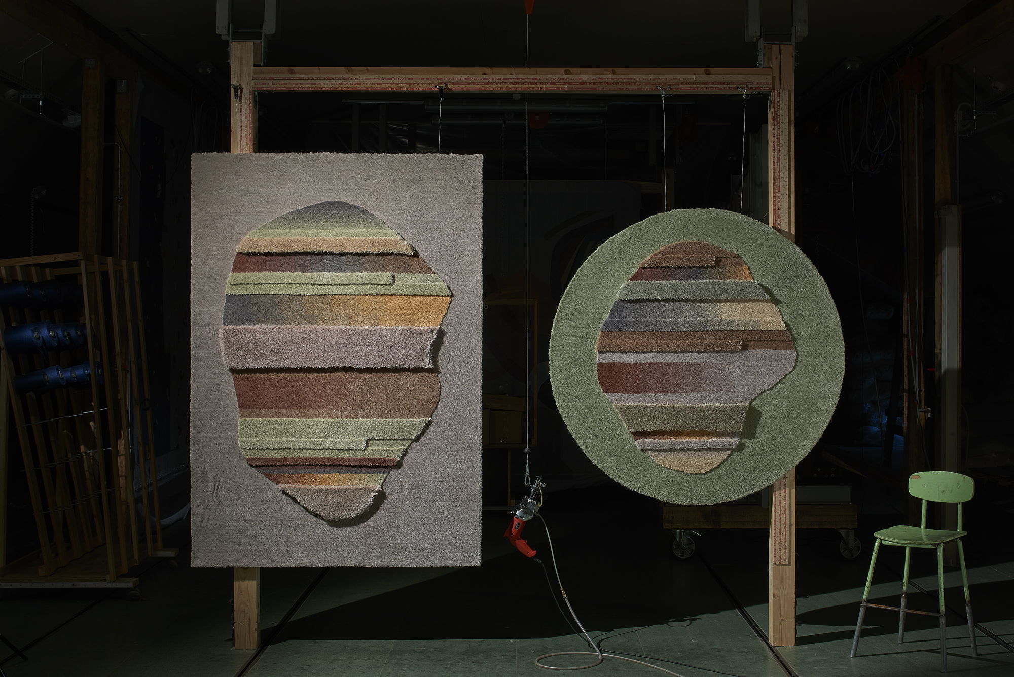 The rug design is a blend of organic and geometrical shapes resembling natural and artificial. The structures within the rugs are inspired by the shapes of asteroids 'Lutetia' and 'Juno'. An asteroid is a small rocky object orbiting the sun. Asteroids are 'by-products' from the formation of our solar system. Since asteroids formed at the same time as other objects in our solar system, these space rocks can give scientists lots of information about the history of the universe. The parallel is drawn between an asteroid, being a primal raw material, and industrial waste similarly being a starting point for the creation of new materials and objects. There is a gentle gradient fusion between colours allowing to create a rich blend of colour combinations. Gradients and varying pile heights that cast slight shadows provide a three-dimensionality to the collection. -
