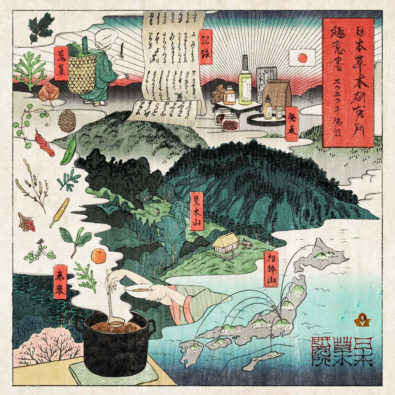 日本草木研究所は、日本の木々や名も知れない野草たちが当たり前に食卓や生活の中に関わる日常の実現のため、全国の里山に眠る植生の可能性の発掘を行っています。全国各地にパートナー提携している山をもち、独自の原材料調達をはじめ、日本の原始的な食用植物資源の価値化の実現、それに伴う地方産業の活性化や持続可能な食材供給、新たな国際競争力の確保を目指しています。全国の里山に入っては、蒐集・記録・発表を繰り返し、おいしい価値化を試行する研究機関です。