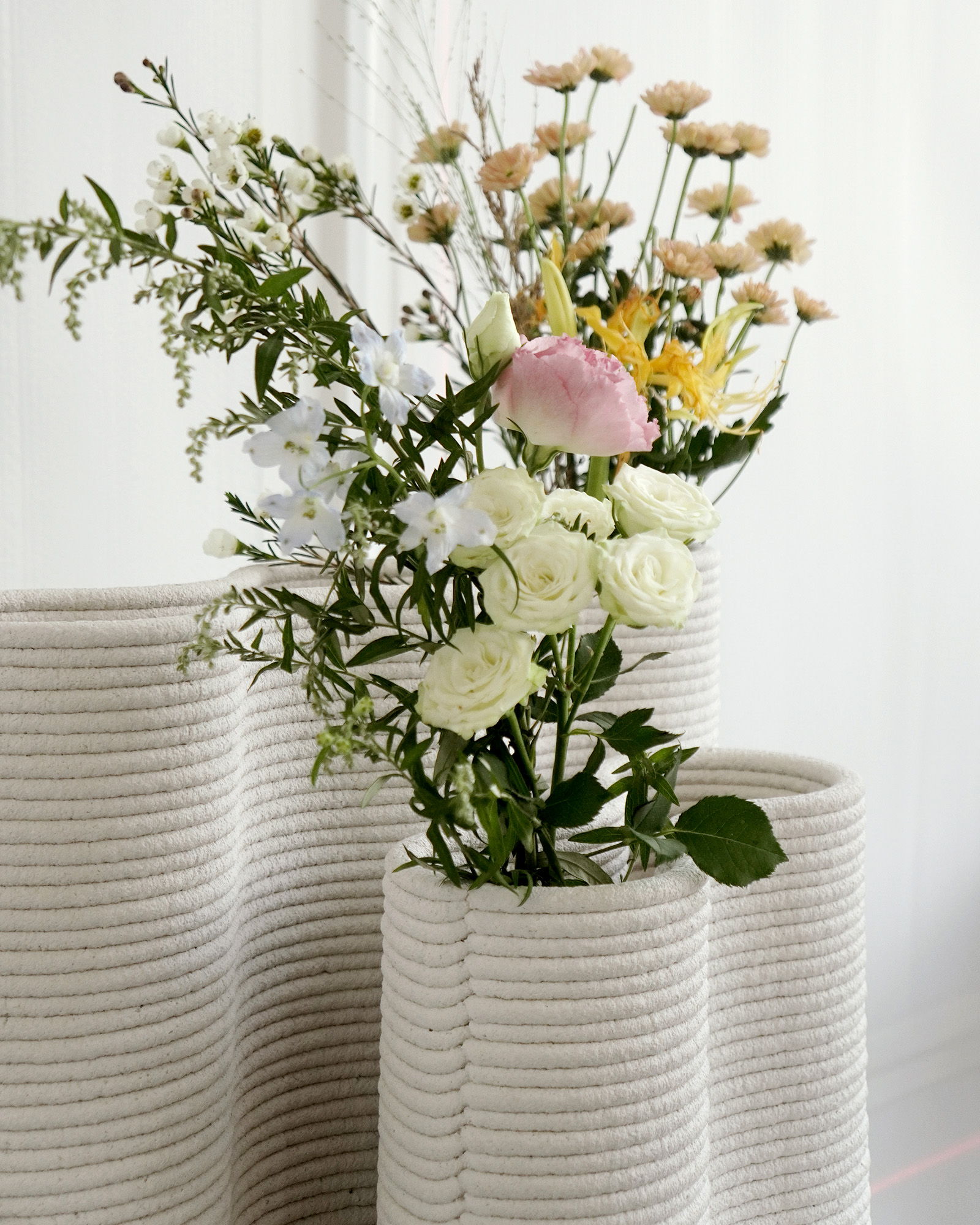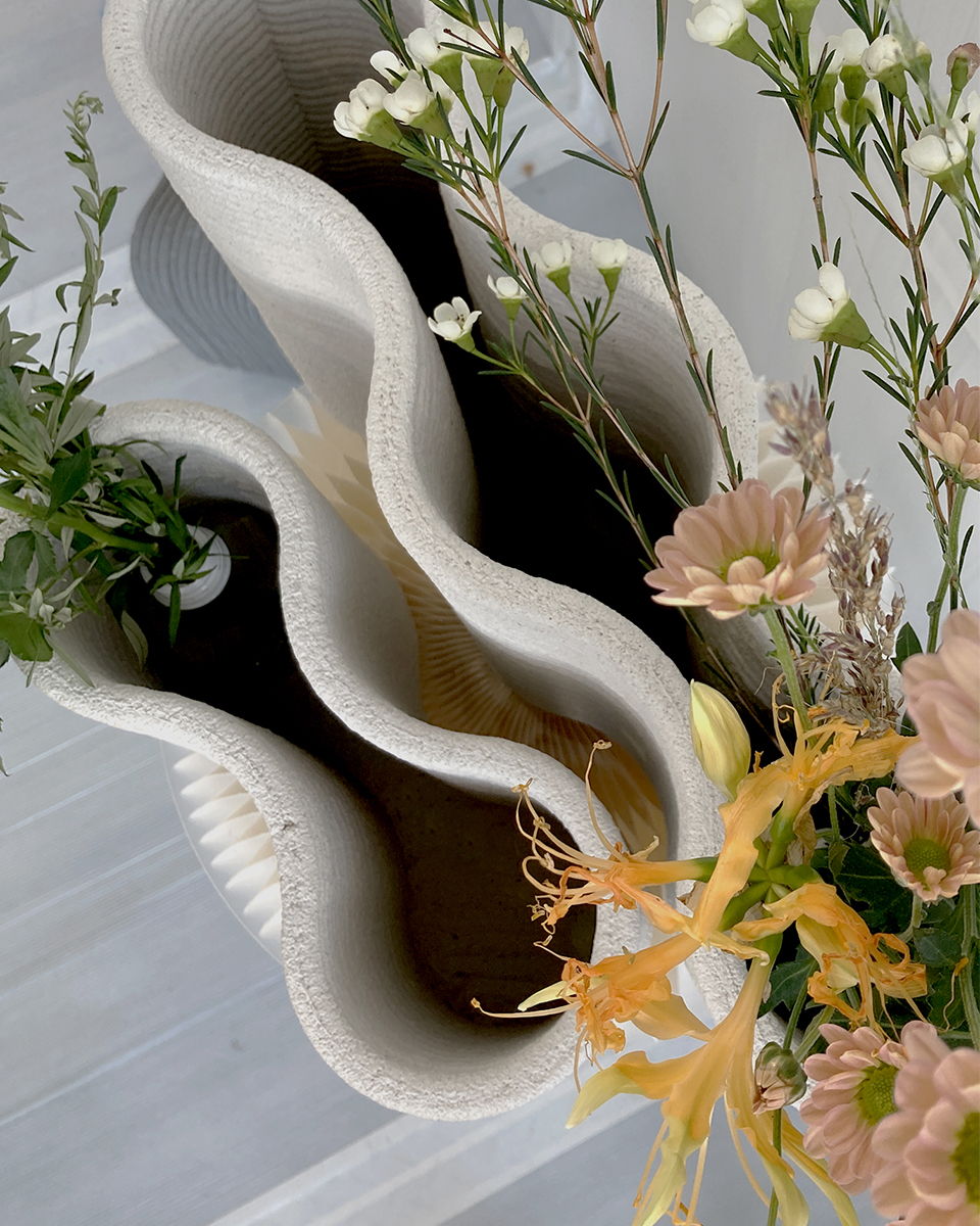 衍.花園 是一種幾何圖案的增材製造盆器,形狀讓人聯想到白色的沙灘——天然的沙浪。 它呈現出獨特的礦物質感,加工技術利用 3D 列印技術生產出自然的紋理與堆疊線條,不需製造模具。