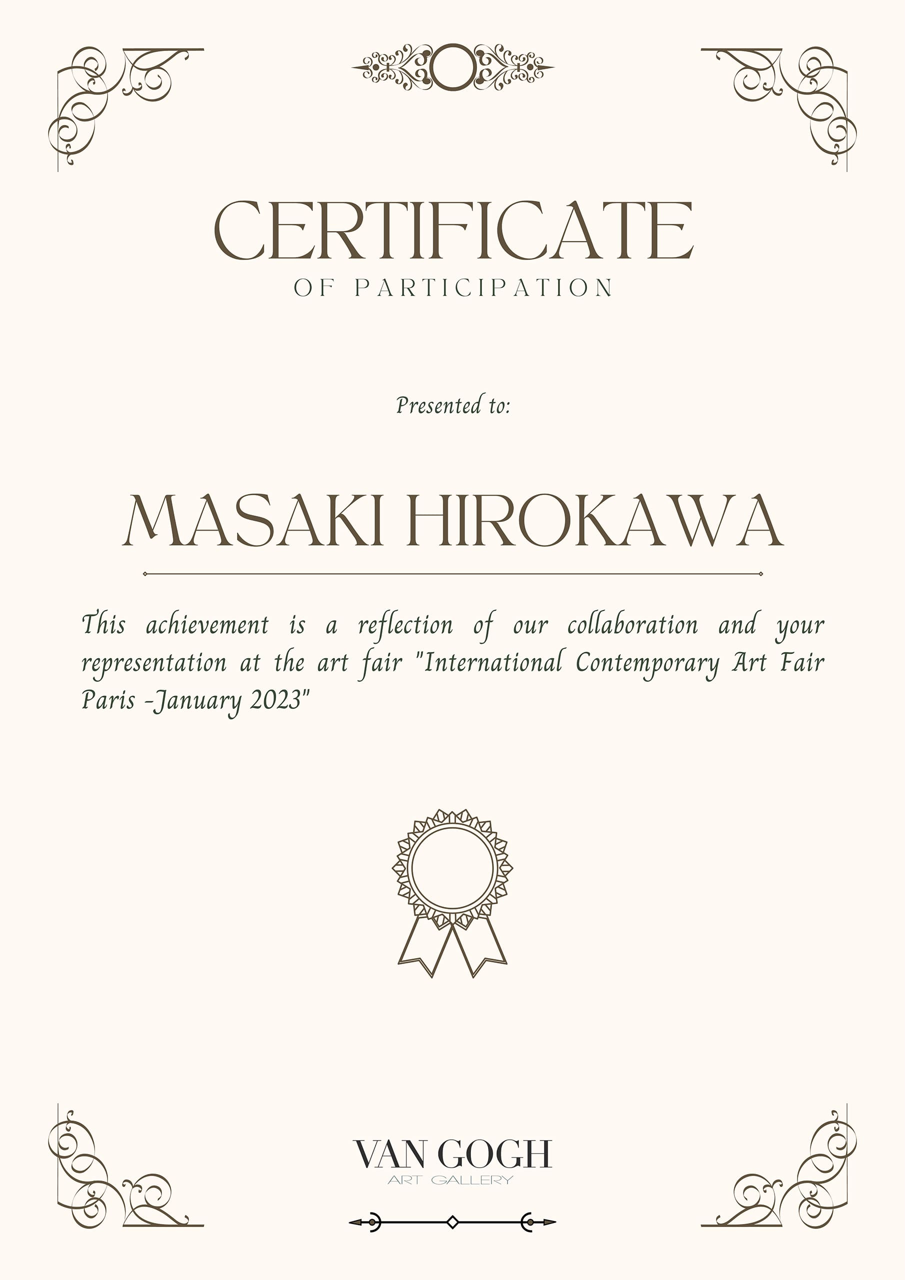 Certificate - Paris 2023 - VAN GOGH Art Gallery - Masaki Hirokawa / 廣川政樹