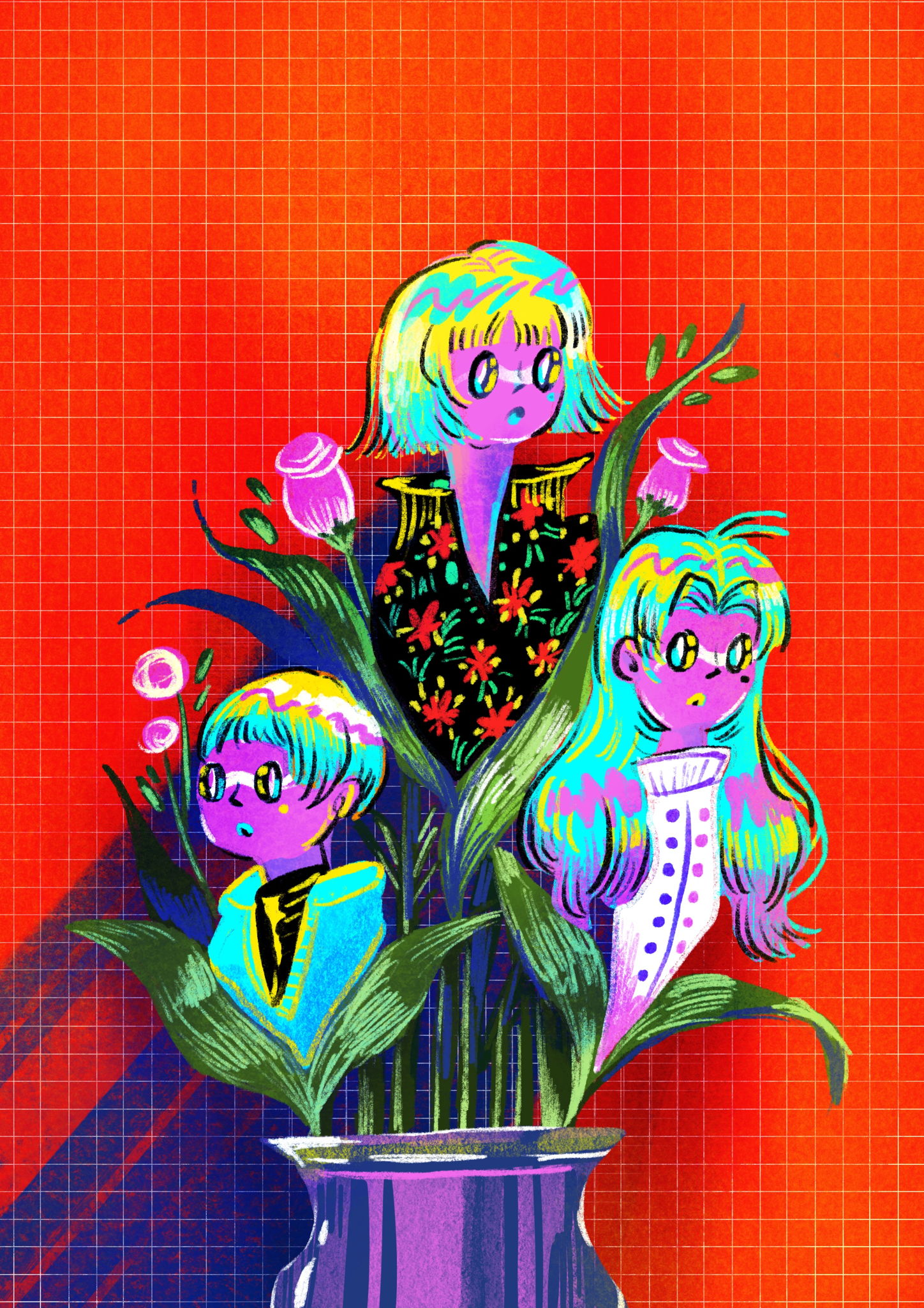 女性のヘアスタイルを花に例えたシリーズ作品です