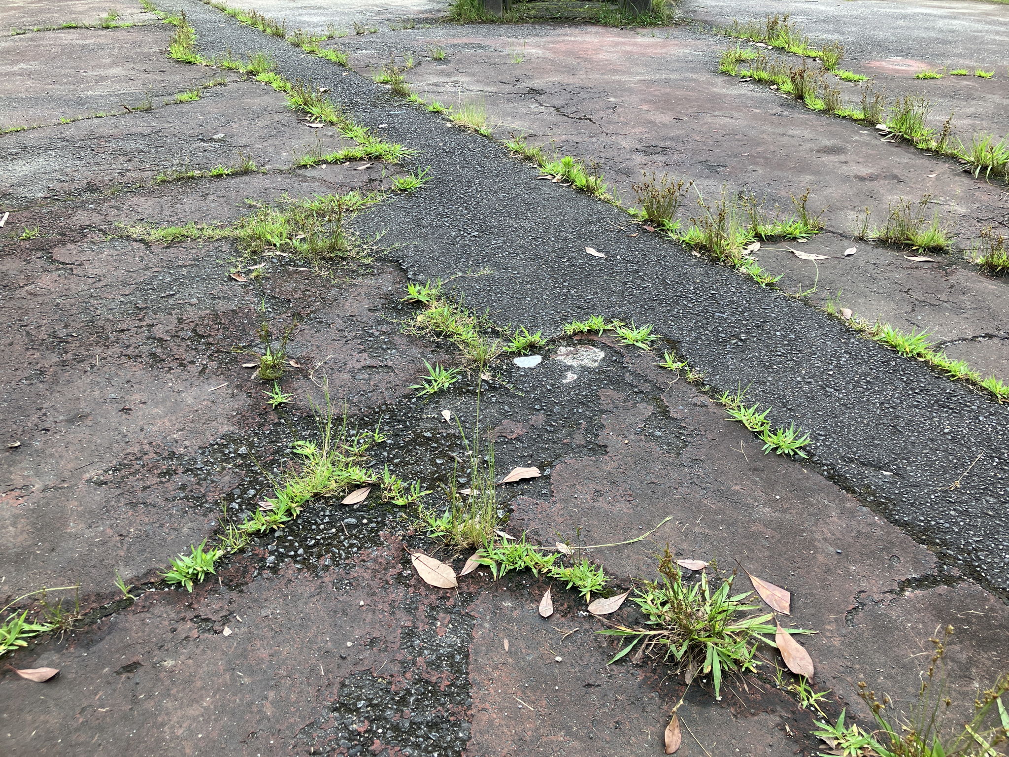 Gum wrappers that seem to be trying very hard to blend in with the age of the paved road over time. If time had passed as it did, perhaps it would have acclimated to the road surface.