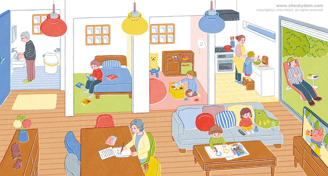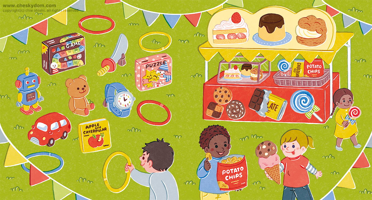 セイハ英語学院の自宅学習用英語テキスト”Be Ambitious”(未就学児)副教材のイラスト