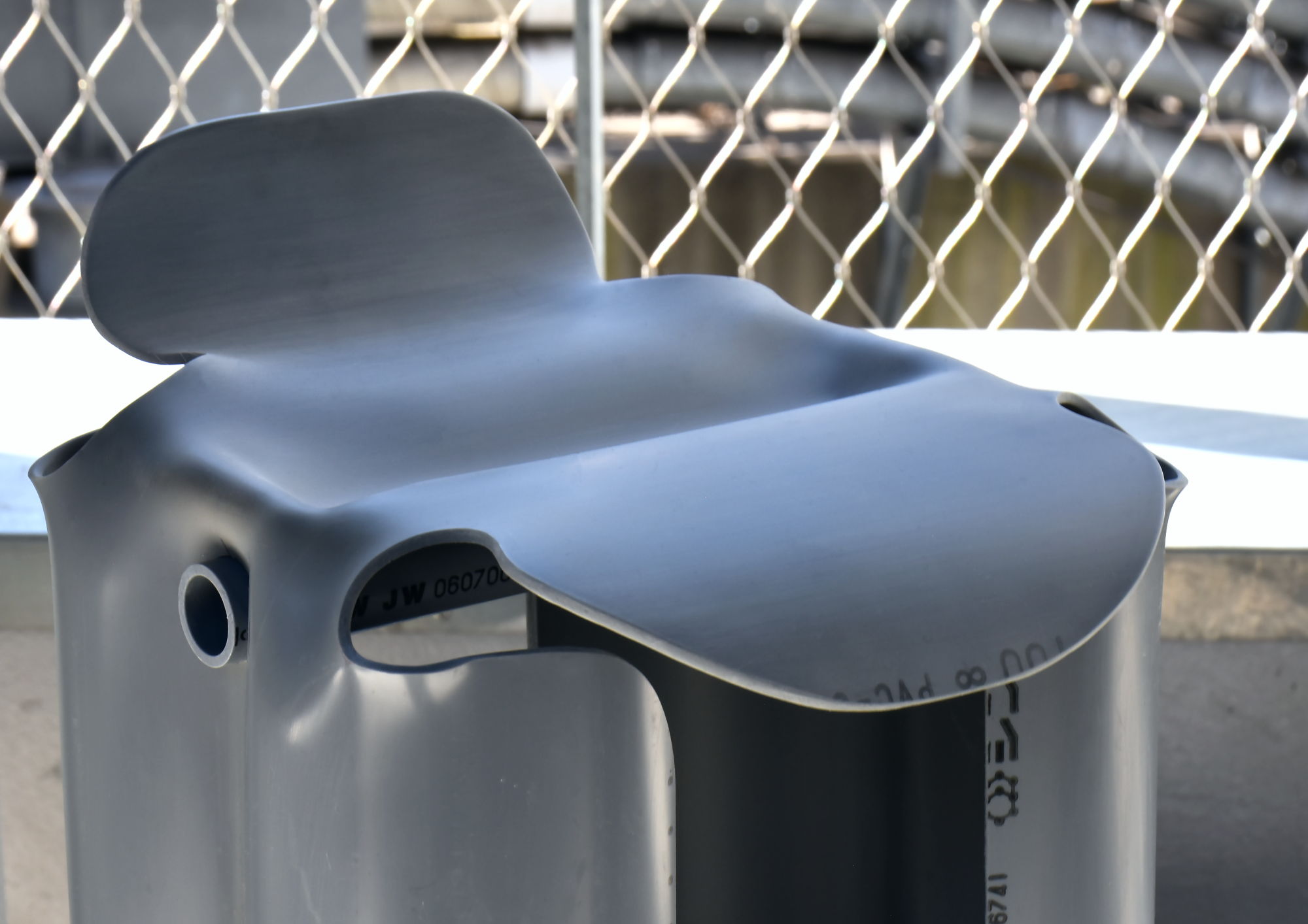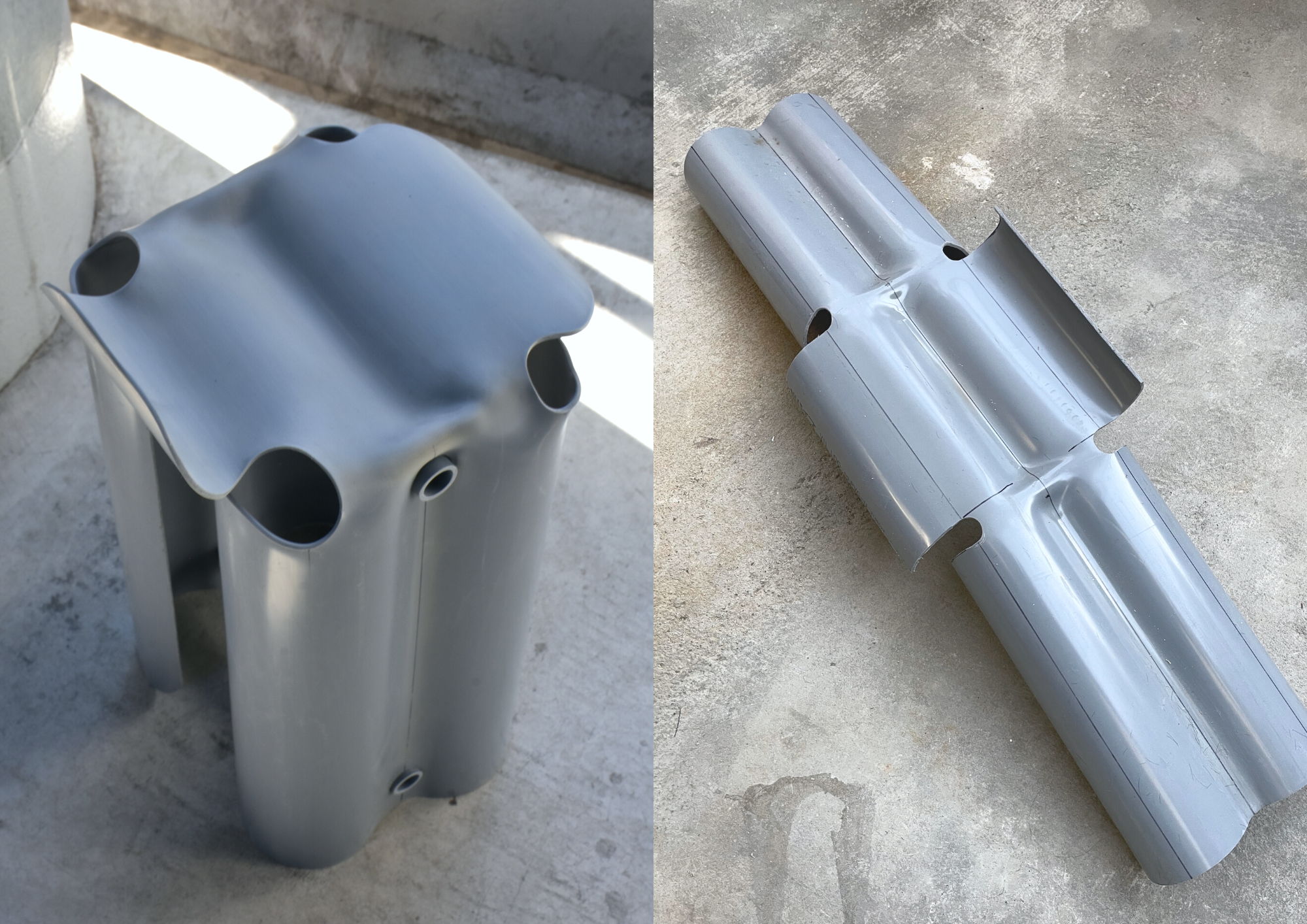 塩ビ管を熱し、曲げたり、開いたりすることでパイプの形状から、人々の生活空間に溶け込むスツールに生まれ変わります。