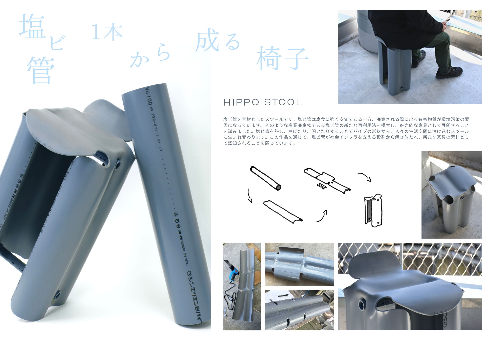 私は今回、そのような産業廃棄物である塩ビ管の新たな再利用法を模索し、魅力的な家具として展開することを試みました。