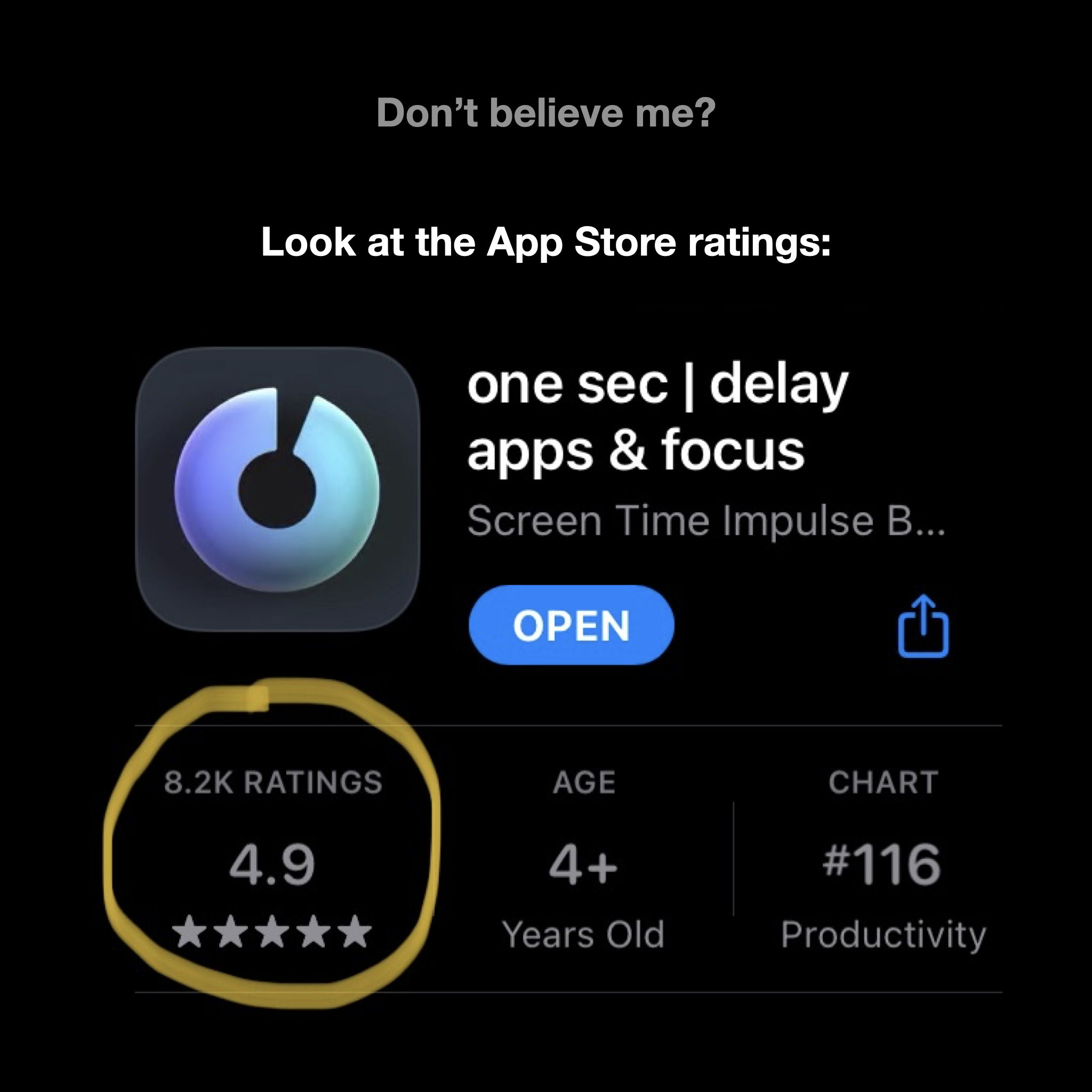 Next, one sec removes instant gratification from social media. Fewer reasons to open those apps.