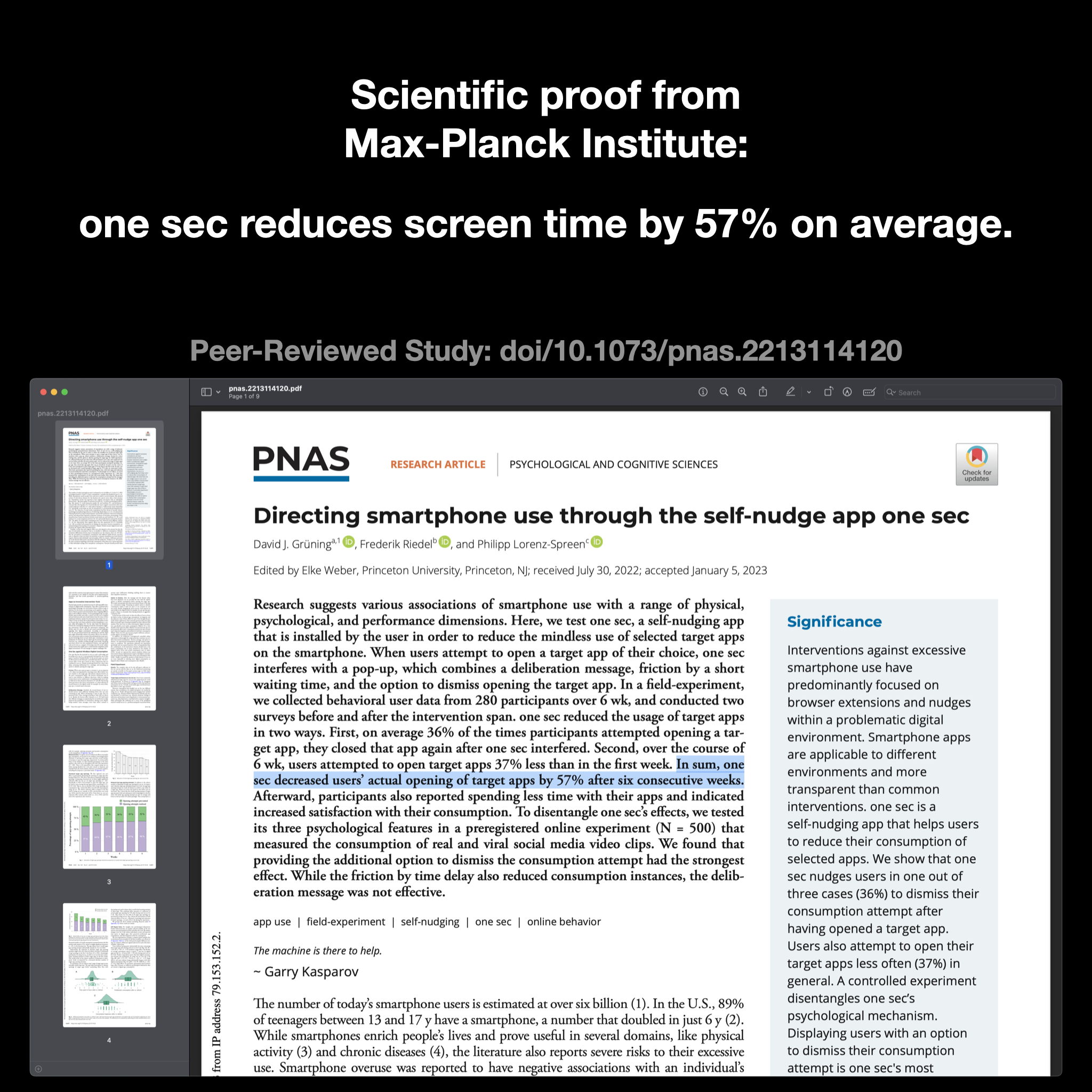Together with researchers from German Max-Planck Institute, we were able to demonstrate that one sec reduces social media by 57%: