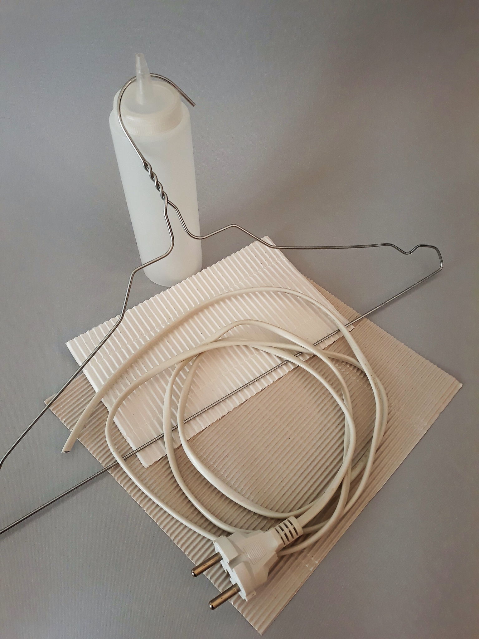 "Filo" is a lighting and chromotherapy device built by combining objects and things normally considered "waste". A galvanized iron laundry hanger, a polyethylene liquid dispenser bottle and other "waste", such as an electric wire with a plug and a microwave-safe carton for food, are transformed into components of a creative "reuse" project, capable to generate a new lamp model. Simple everyday objects thus live a "second life", materializing a sustainable idea and minimalist lighting alternative. "Filo" fits discreetly into different contexts and can be self-constructed, without particular manual skills, at very low cost. The use of an E14 Led 5W RGB bulb with remote control makes it suitable for counteracting daily stress, generating pleasant sensations and psychophysical well-being. Dimensions: 21(L)x21(D)x31(H)cm.