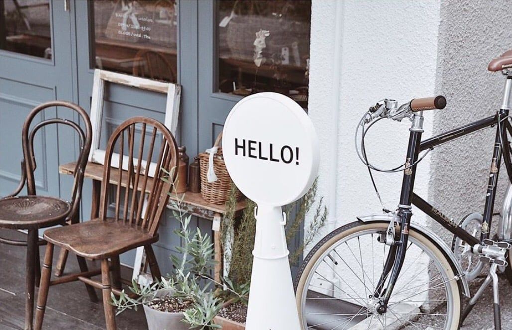 駐輪禁止や営業時間の表示以外にも、個人店のロゴをデザインした看板は、スモールスタートをしたばかりのお店にも愛用されています