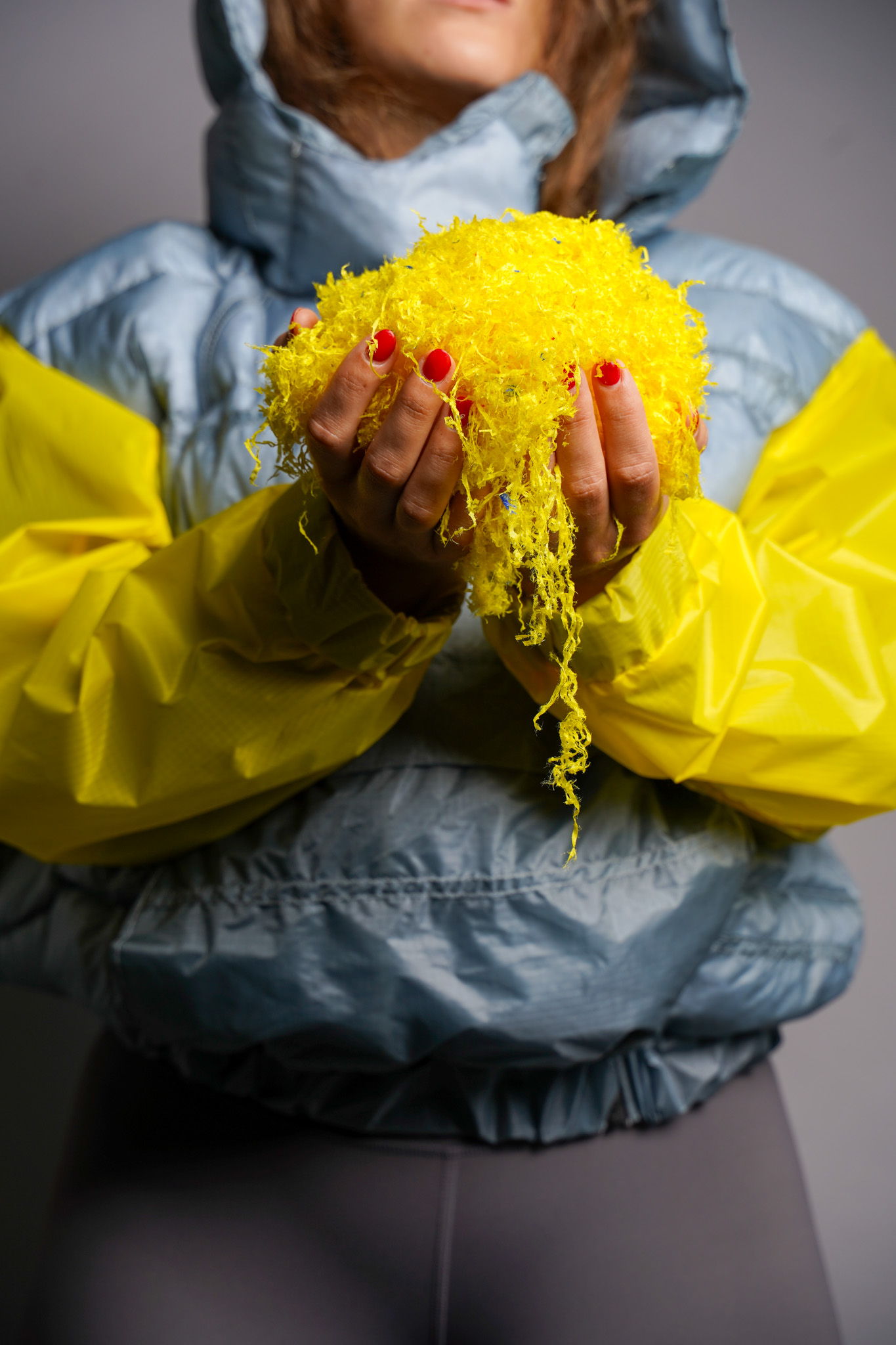 I'm an Industrial Design grad student and skydiving instructor. My project addresses APCO Aviation, an Israeli parachute maker producing 2,000 parachutes annually, with 15% material waste (15,000 sqm fabric). I propose a circular design model using a fabric shredding machine to repurpose waste, creating a new product line matched to the waste size. Shredding also optimizes remnants during laser cutting. Larger fabric pieces become 120 cm-wide fabric for coat patterns, and smaller ones are shredded into insulation. Preserving original colors post-shredding offers design flexibility. These coats serve fashion and research, maximizing APCO's raw material. The model can expand to various products, promoting sustainability. At the end of each product's lifecycle, they can be shredded and reused as filling, creating an endless cycle of innovation and renewal.
