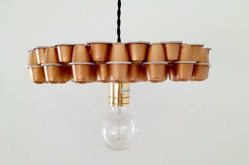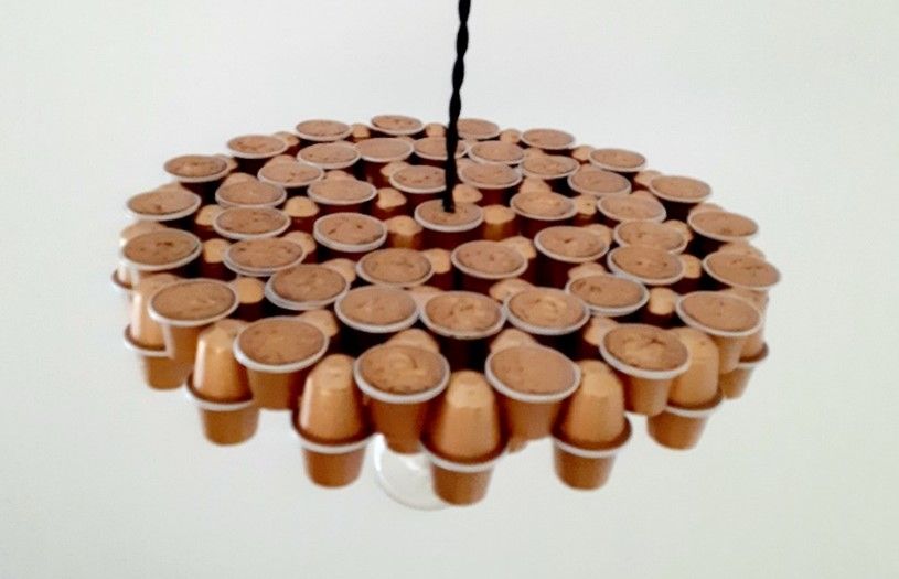 IRON LAMP is made from coffee capsules (aluminum), used ones that go to waste daily by the thousands because they are only used once. The objective was with this waste, to be able to show that we can develop/build quality products/objects for everyday use. The IRON LAMP can be used in a family home, as well as in commercial spaces or even in bars/hotels.