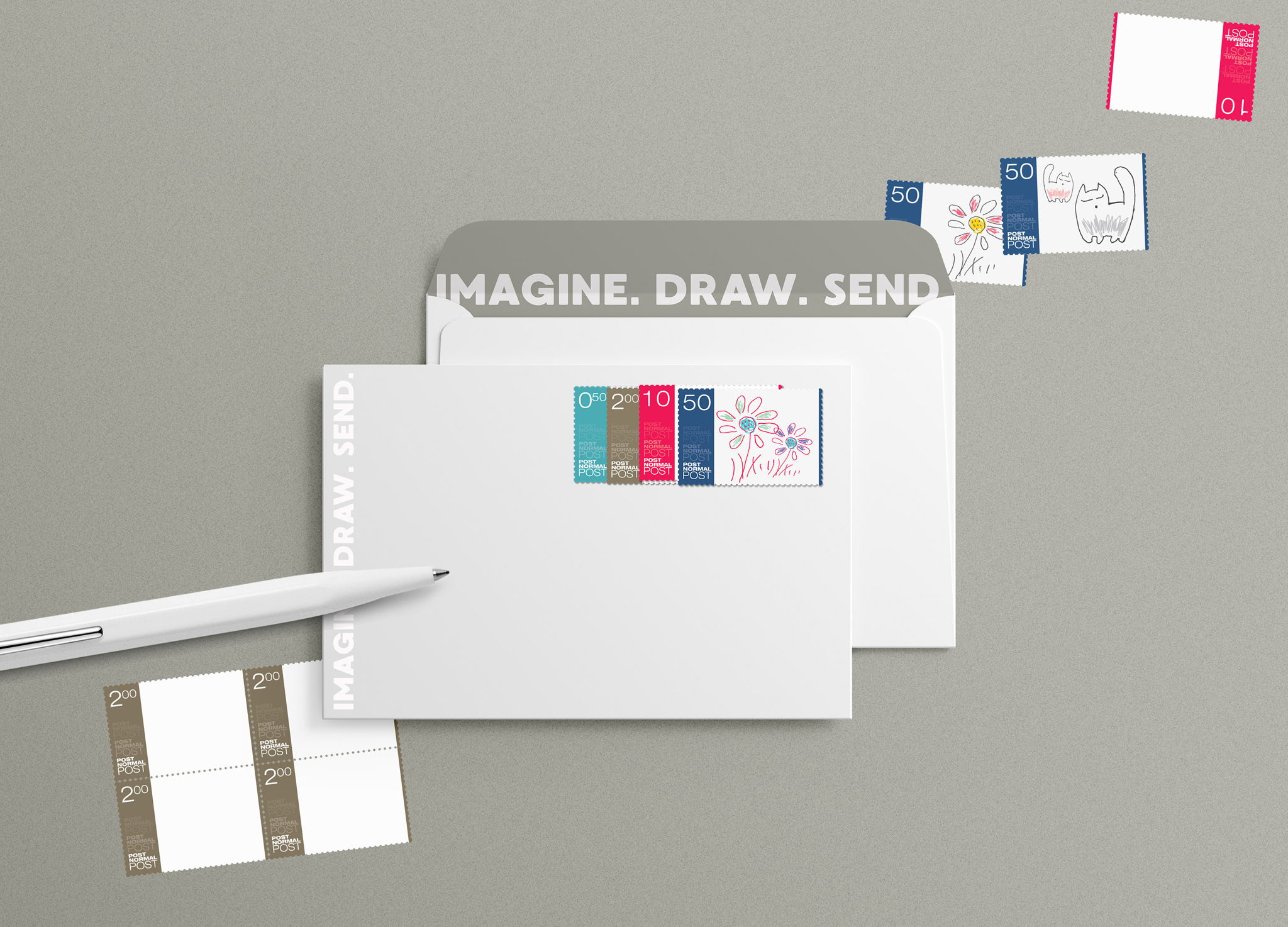Stamp as it is but without any images. Add own draws and run the letter before your friend open it. Image. Draw. Send