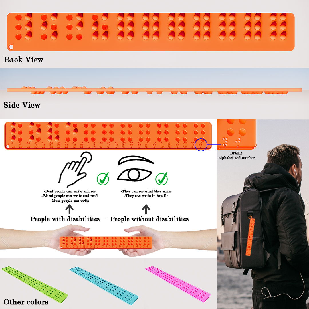 Two-Way Communication: By pressing the bubbles up or down, users can form words and phrases in Braille. This allows for two-way communication between people with and without disabilities. For example, people without disabilities can press the bubbles to create a message in Braille, and a blind person can read it by touching the bubbles.