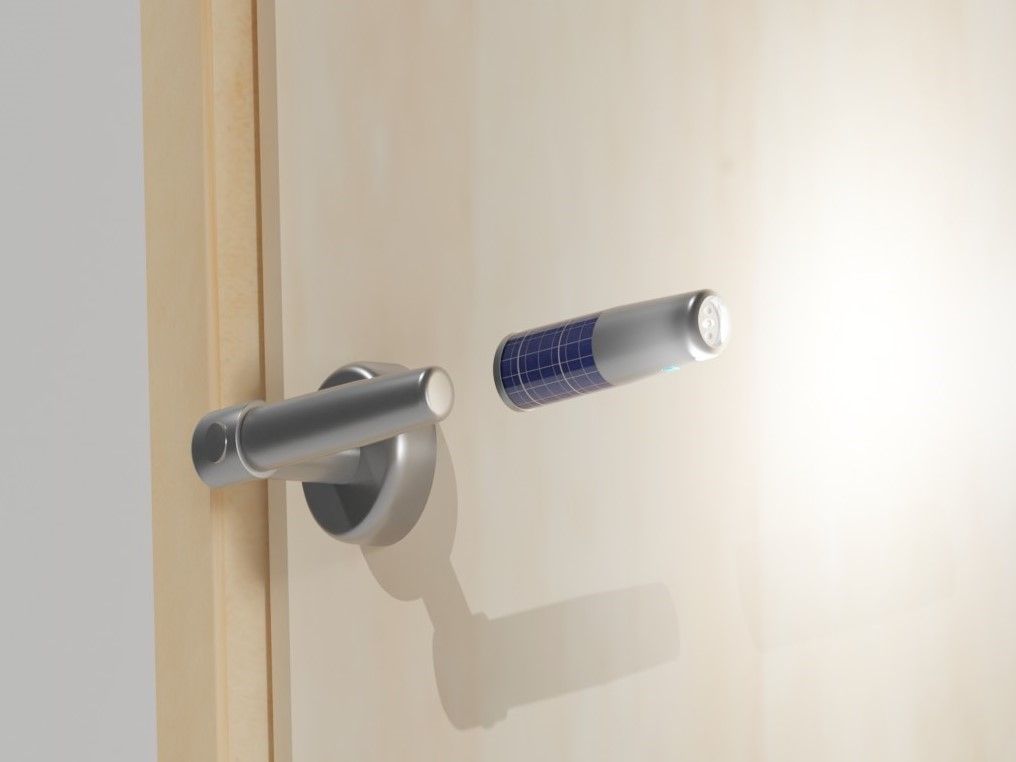 ライト一体型ドアノブは、取り外し可能なライト、ソーラー電源、振動センサーが搭載された防災機能を持つドアノブ。日常では、本来の機能に加え、ドアノブを回すと振動センサーによりライトが点灯し、夜間時に足元を照らす補助ライトとして使用される。非常時(地震)では、地震の揺れによってライトが点灯し、避難経路であるドアを照らすことで避難誘導灯として使用される。ライトは、ドアノブから取り外すことができ、懐中電灯としても利用可能。ソーラー電源のため、従来のドアノブが設置できる場所であればどこでも設置ができ、停電時に光源が無い風呂や、トイレなどにも設置できる。