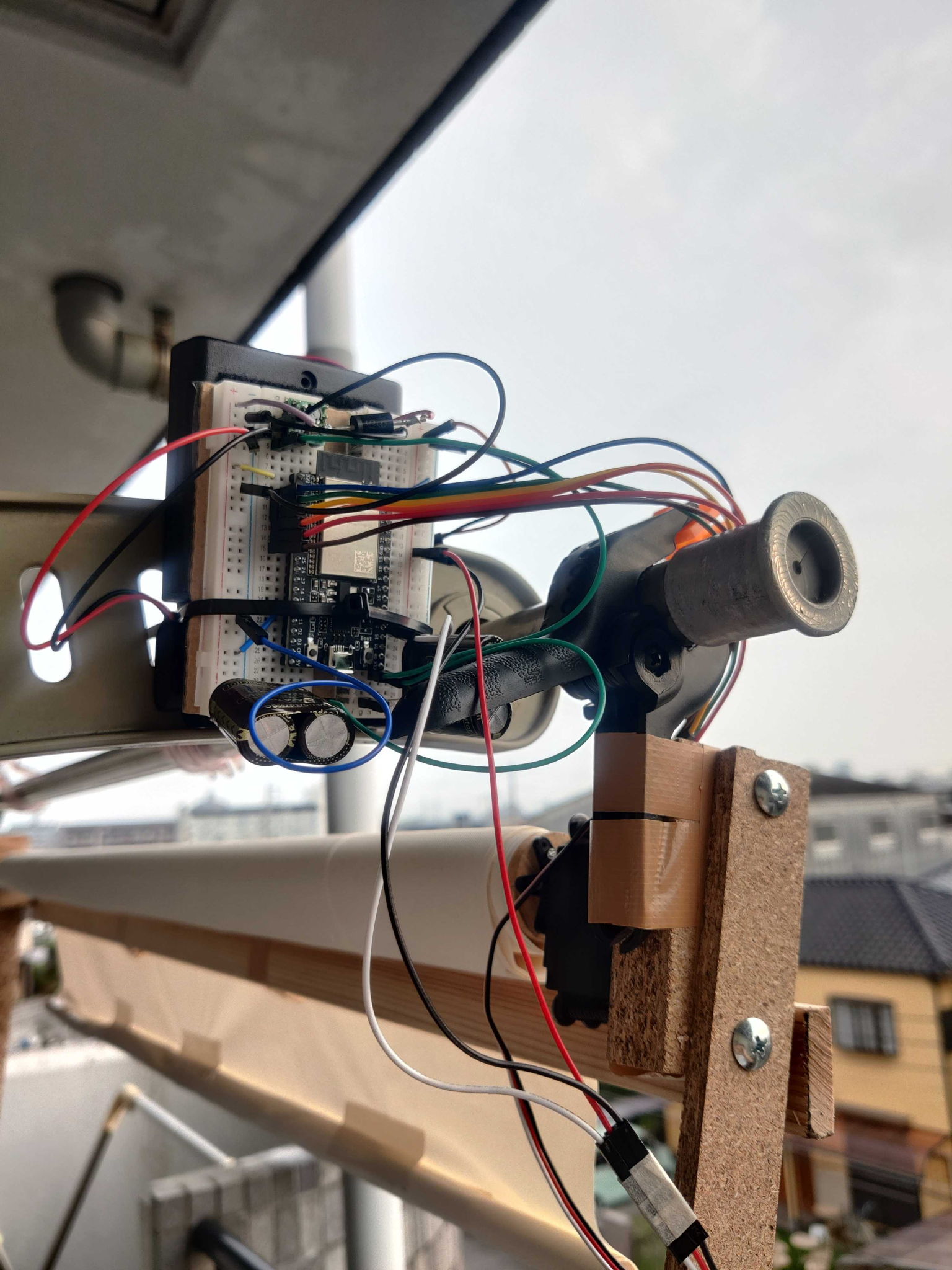 雨を検知して自動展開する遠隔操作可能な洗濯物カバー「ARC」