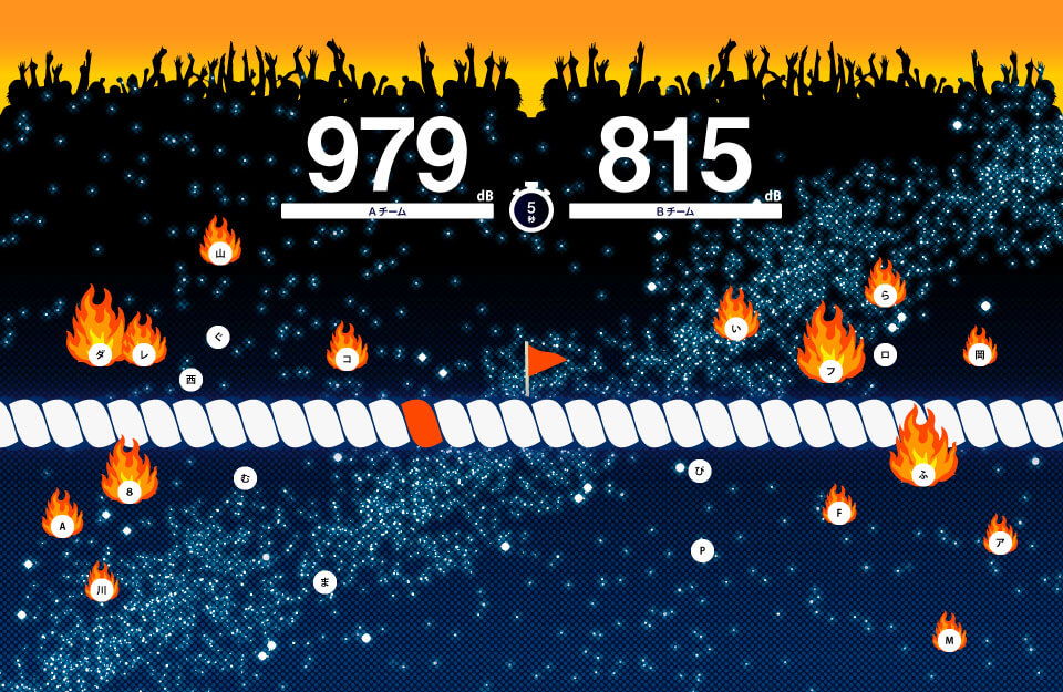 3)あとは制限時間内に参加者全員が大声を出し合うだけ。声のデシベルの大きさで勝敗が決まります。