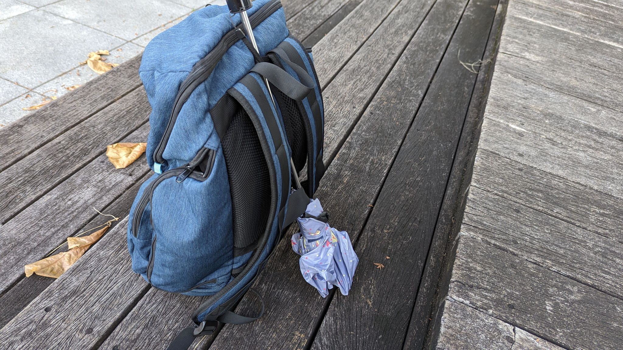 But you can simply combine a regular backpack with a travel umbrella to make it stand.