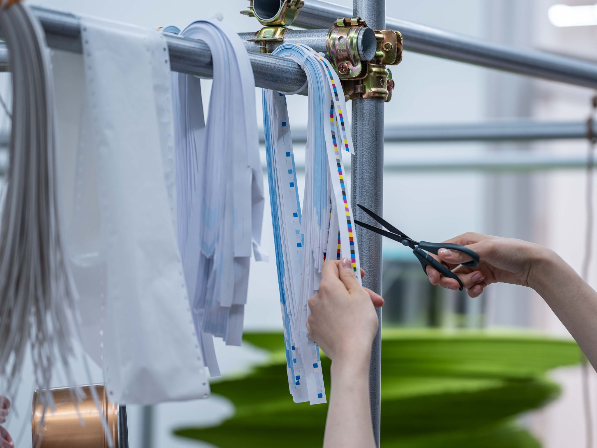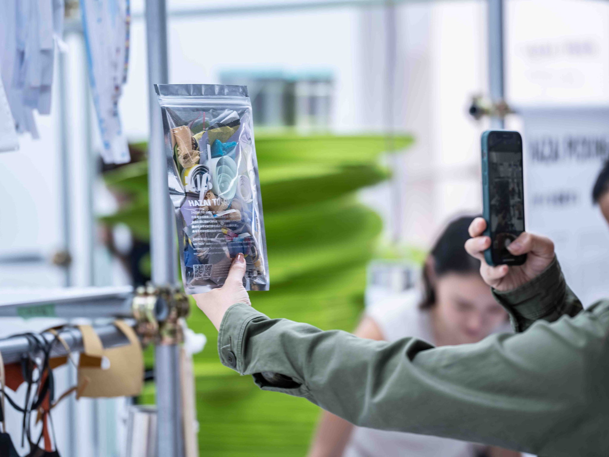 ハザイ(生産過程で偶発的に生まれる切り屑や、加工時に出る製品には不要な小さな部品等のこと)は、その時々の工場の仕事内容によって生まれるものが異なるため、果物と同じように「旬」があります。「HAZAI PICKING」は、見て触って、お気に入りのハザイをパッケージの中に詰めて収集し持ち帰りができる、イチゴ狩りのような体験型インスタレーションとして期間限定で行った展示です。 ゴミを捨てない、リサイクルするといった「正しいこと」が是とされる昨今ですが、Palab(パラボ)は「正しさ」より「楽しさ」に焦点を当てた創作活動を行っています。そもそもハザイは人工的な生産活動から副次的に生まれる故、意図しない形や、偶発的な色があり、見ていて楽しいのです。そしてハザイは現代の産業と密接な関係にあり、ハザイを通して現代社会や人々の営みさえも垣間見ることができます。本展では「もぎたてのハザイ」で工作ができるDIYスペースも設けており、手を動かしてハザイの可能性を体感することもできる仕組みも試みています。見方を変えると世界は面白いものに溢れている、その視点変換のきっかけになればという想いを込めた企画です。