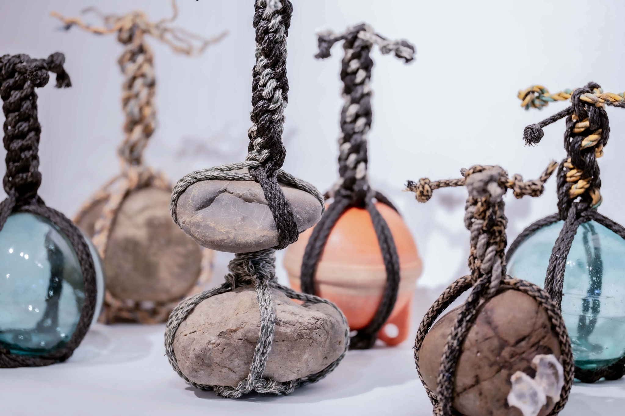 関守石とは、茶庭や露地に置かれる小石をシュロ縄で十字に結んだ通行止サインであり、日本独自の境界を暗に示すシンボルで、現在でも各所で実用されているオブジェです。「HAZAI SEKIMORIISHI@ISESHIMA」は、三重県の伊勢志摩エリアで採取した漁業で使用されていたロープや浮き、海岸に流れ着いた石等の端材を採取し、その土地ならではの関守石を制作した作品です。MOKU ISESHIMA(https://moku-iseshima.com/)というオーベルジュのアートプロジェクト(https://palab.art/reports/reports-1129/)で制作した作品の一部で、実際に現地ではサインとして使用されています。ゴミを捨てない、リサイクルするといった「正しいこと」が是とされる昨今ですが、Palab(パラボ)は「正しさ」より「楽しさ」に焦点を当てた創作活動を行っています。