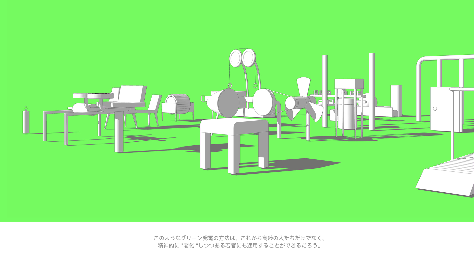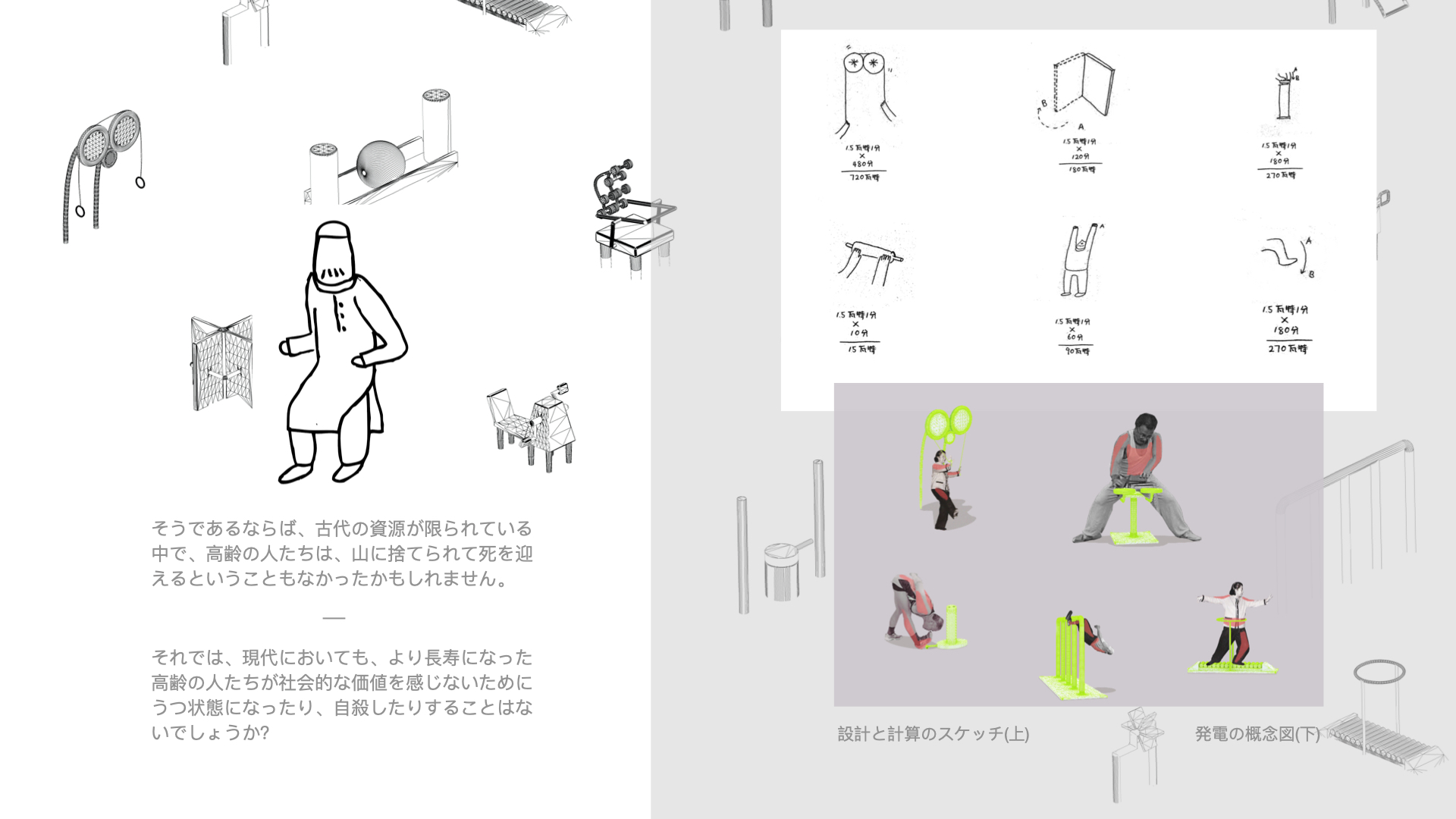 By encouraging the elderly to participate in the process of generating electricity for the city, this project attempts to not just resolve, but also serve as a medium for intervening in society and unfolding broader conversations around the following questions: How can they embrace better social cohesion and recharge their mental health through engaging in collective activities? How can we take advantage of senior citizens’ well-being to mitigate problems (such as energy crisis) in a predictable unbalanced society?