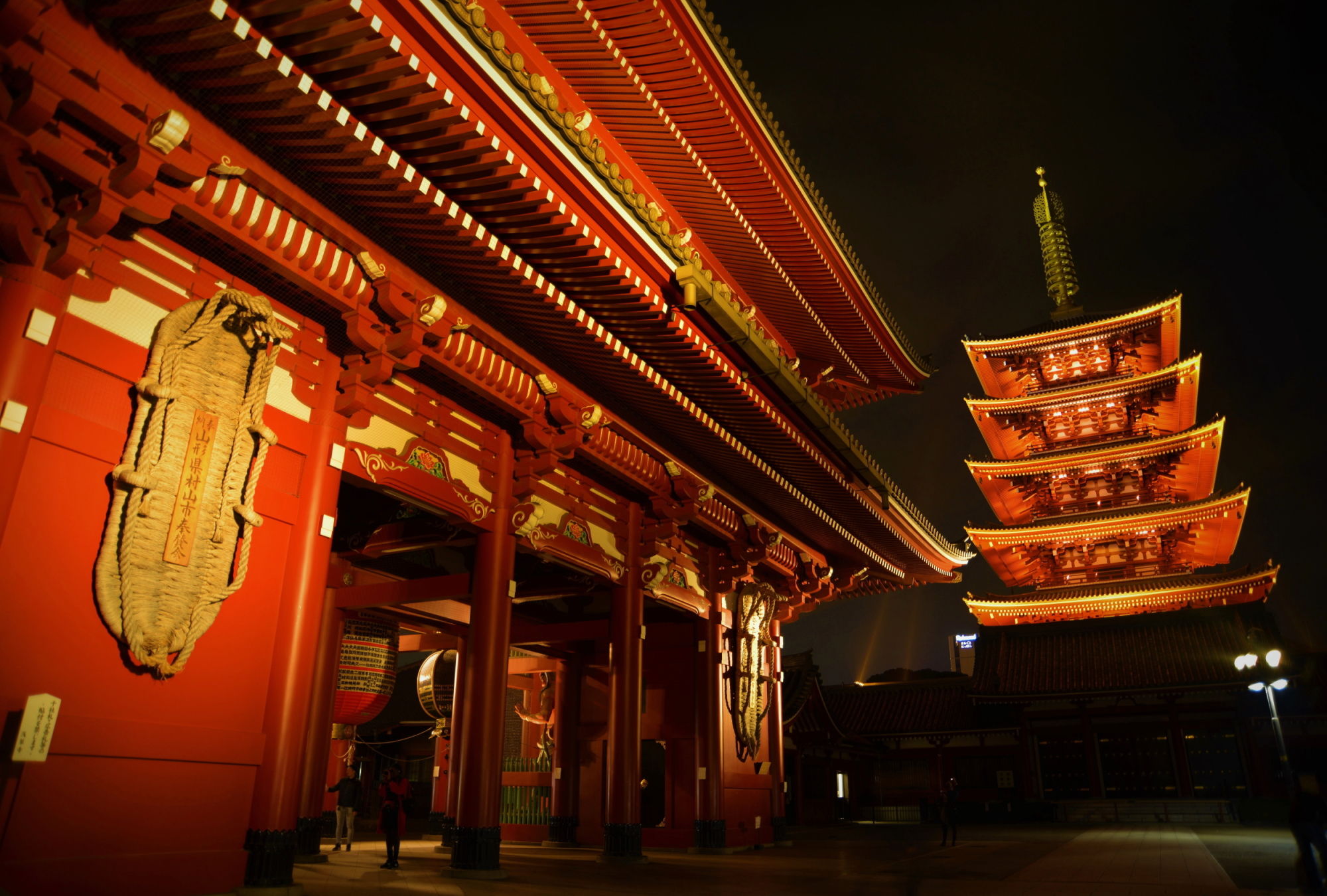 The crowd by which Senso-ji in Tokyo Asakusa will be also noon at night