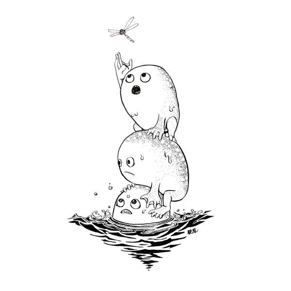 水の持つピュアなイメージが表面に出ていますが、恐い面も少し表現したいので鋭いギザギザの歯を彼等は持っています。