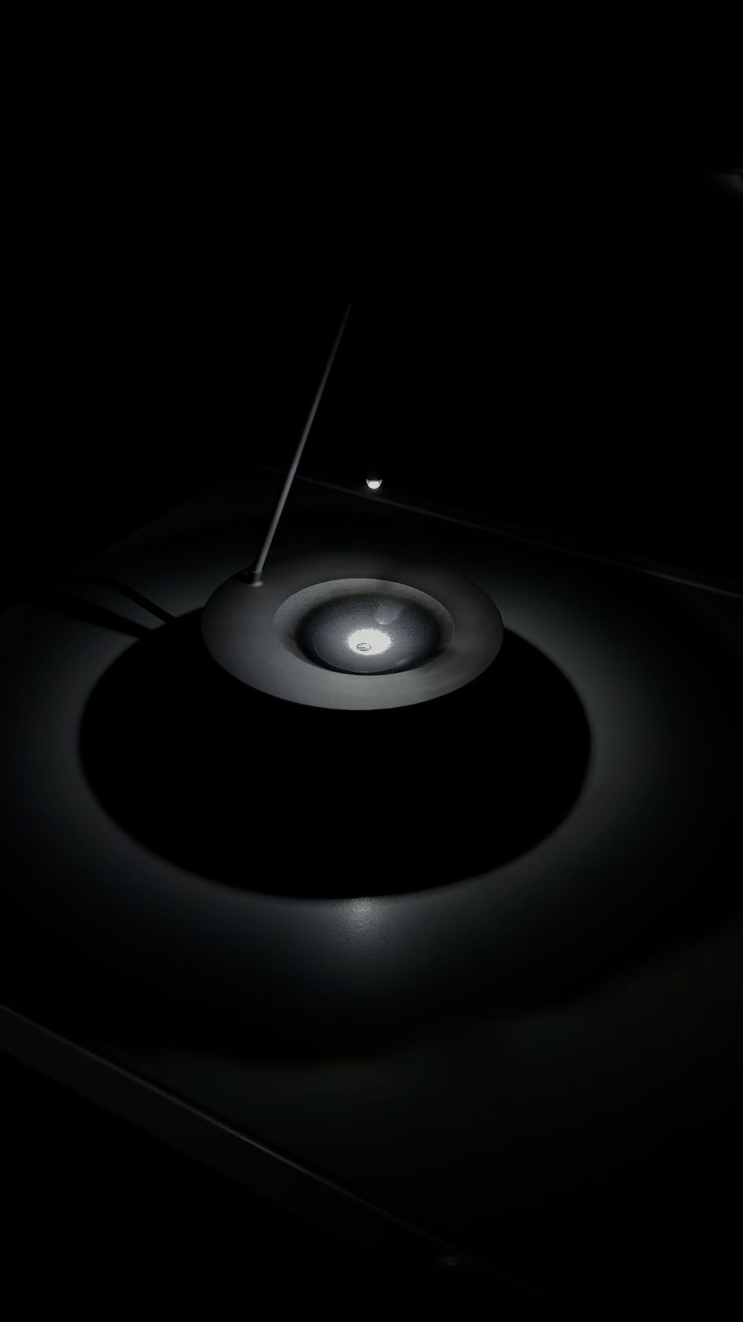 鹿威し、散る桜、除夜の鐘。人は、繰り返し終わりを告げるものに、心を落ち着ける。DEWは、盆の水が循環することで無限に繰り返す線香花火のようなアート。部屋を真っ暗にして、見つめるだけで、瞑想のような体験ができる。様々な試行錯誤を経て実現。