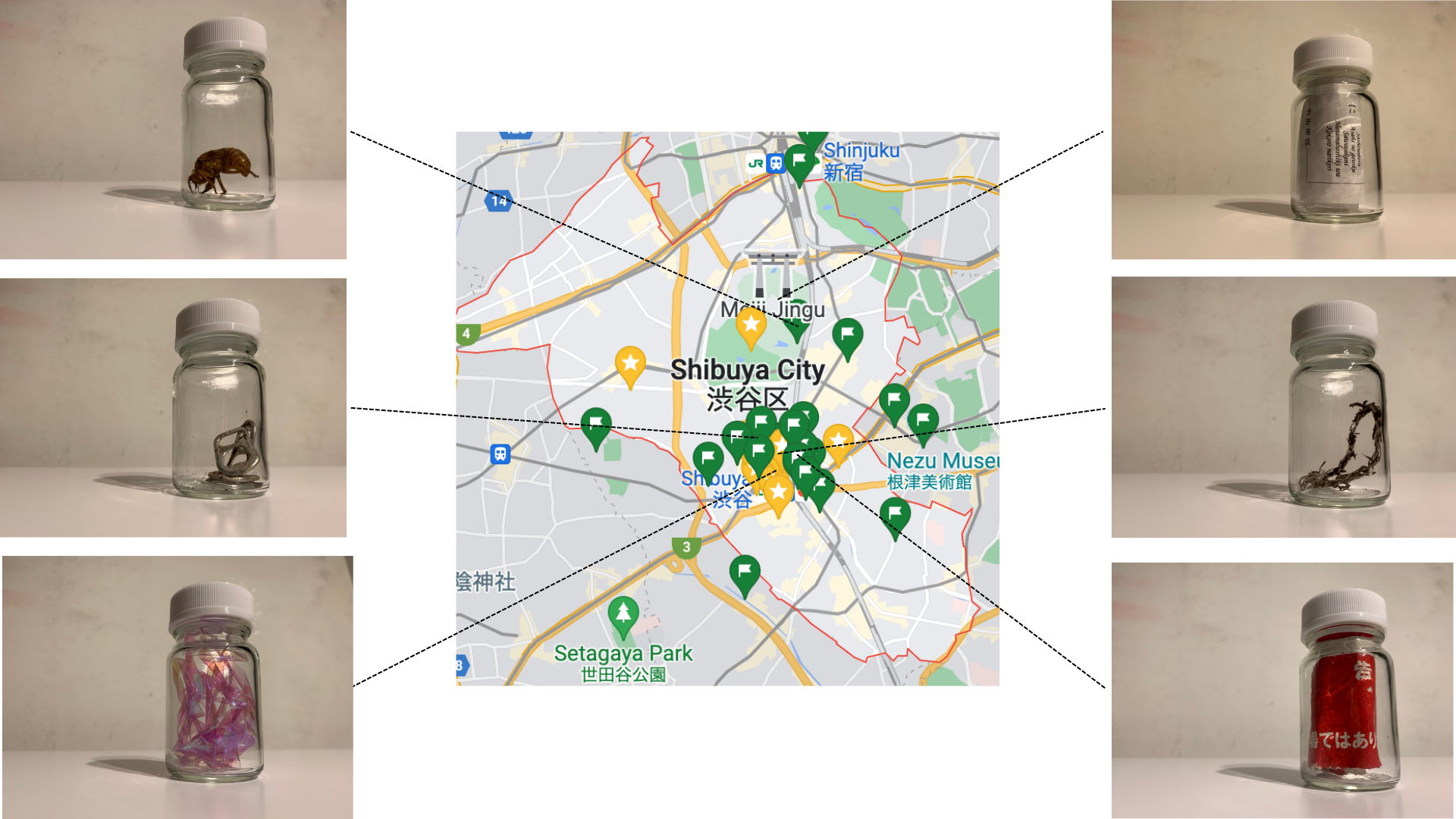 私たちは都市に対する正解的解釈と、クリエイティブで自分らしい介入による一種の脱却的解釈にギャップがあると考え、そんな可能性に溢れた”素敵なまちの使いこなし方”を閉じ込めます。小さな透明な瓶に、お気に入りの場所を閉じ込めることで、人々の都市に対する均質化した解釈と介入の方法に可能性を与えて、自分なりの都市の使いこなし方が軽やかに爆発するような社会を描いていきます。