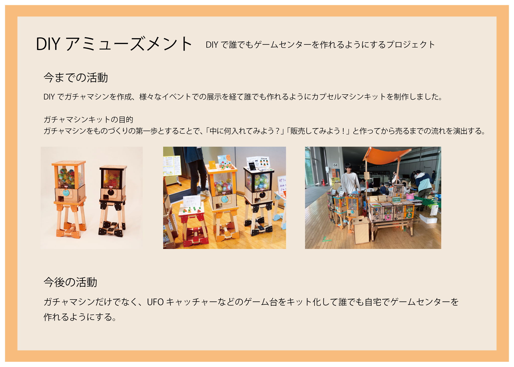 「DIYでゲームセンターを作れるようにする!」を目標にDIYアミューズメントというジャンルを追求しています。展示で人気なゲーム台をキット化して誰でもDIYで作れるようにします。