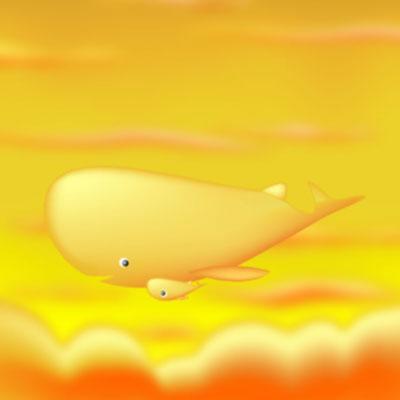 クジラの親子の夢は夕焼け空を泳ぐこと。西の彼方をよ?く見渡せば、積乱雲のすき間をぬって泳ぐ、親子クジラを見つけられるハズ。