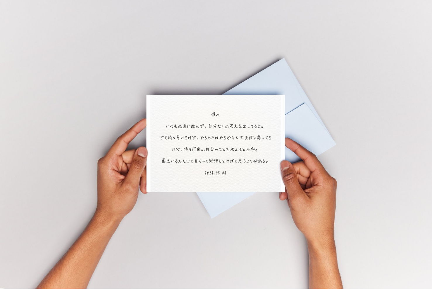 このアートプロジェクトは、参加者が自分自身への手紙を書く行為から始まります。