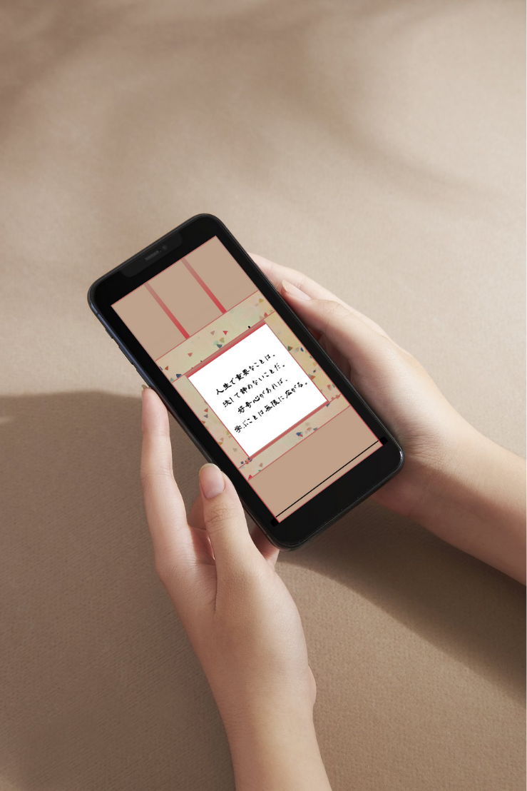 AI茶人からの格言が掛け軸に組み込まれ、投影されるイメージは全てAIによるデジタルで完結します。また、デジタルアートとしてNFTに保存することもでき、このAI茶人との体験を通して出会う偉人(格言)との一期一会の場を永遠の思い出にすることができます。