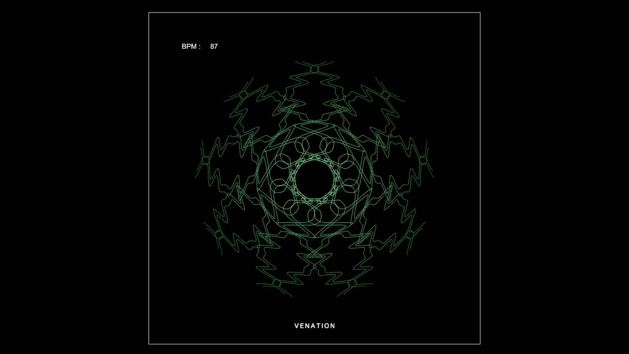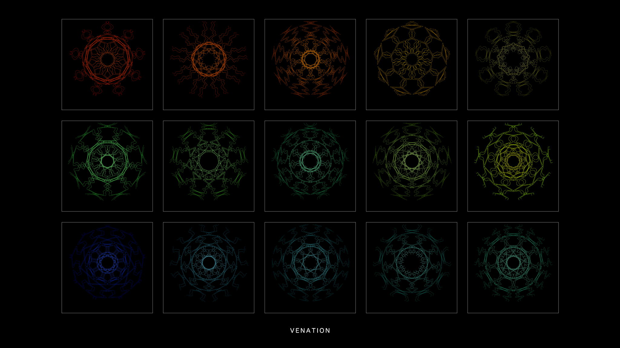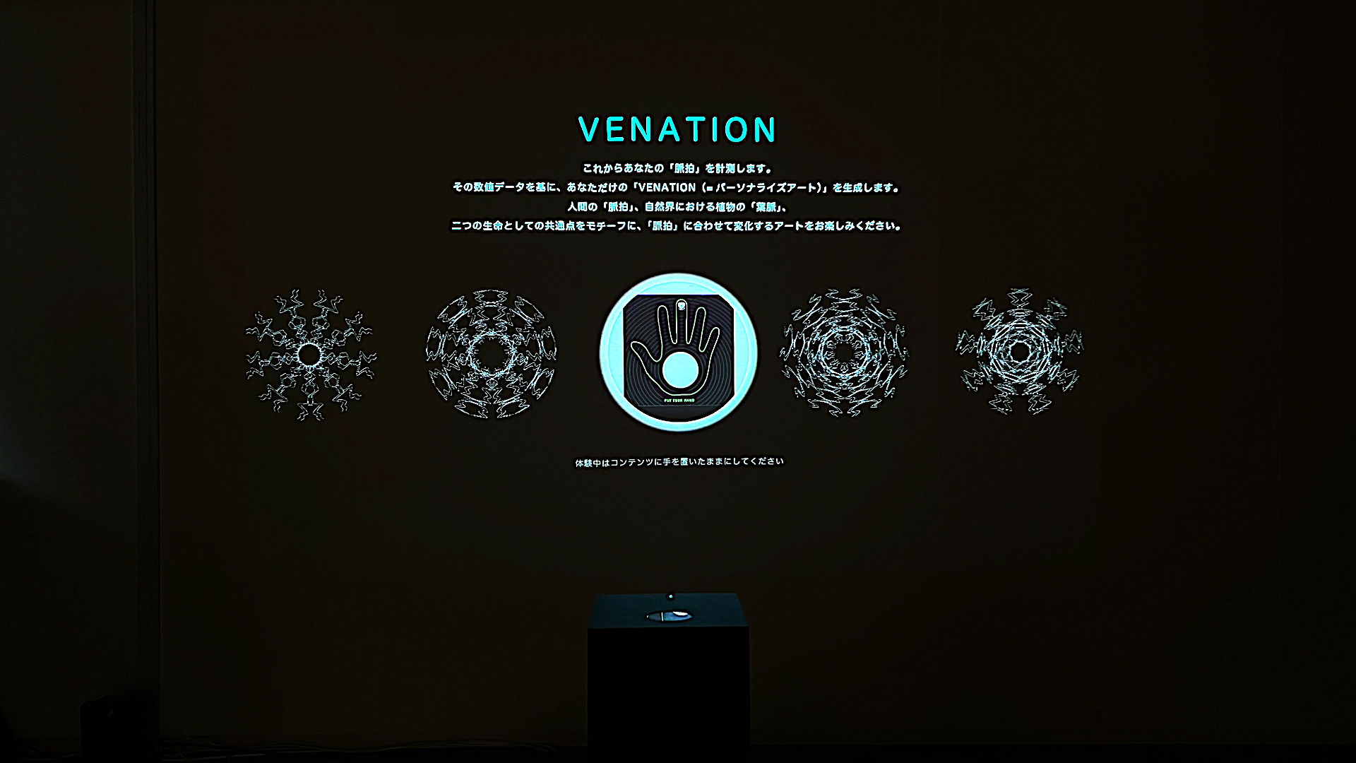 体験者の「脈拍」を計測し、そのバイタルデータを植物の「葉脈」の配列パターンに倣って曼荼羅的にビジュアライズ。