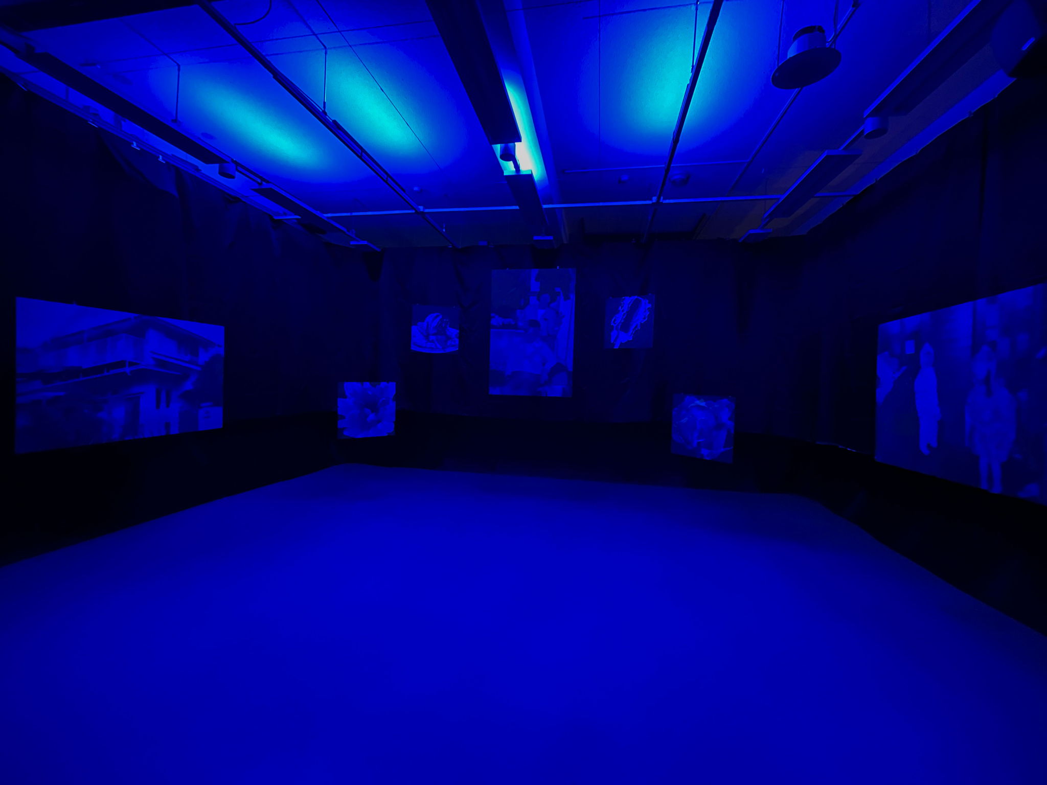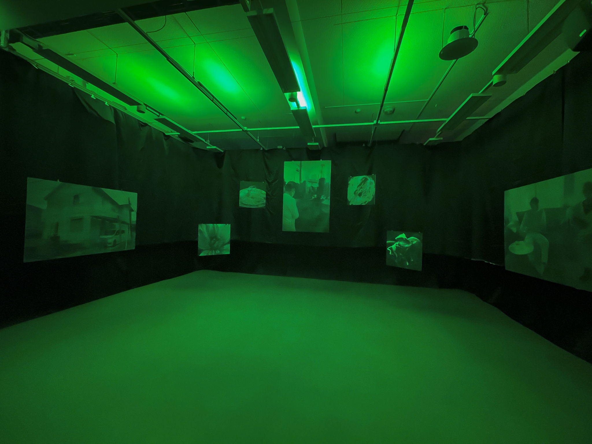 部屋全体を照らしているライトの色で写真が変わる。1枚の写真から1つの時間だけでなく、3つの時間が鑑賞できる。赤色、青色、緑色の順番に昔の時間から現在の時間軸に変化していく。人間、植物、風景などの成長、老い、進化…様々な時間を記録した写真を見るだけで感じるのではなく、目の前で写真の中の姿が変わっていく不思議な体験を、空間ごとまるでタイムスリップしているかのような雰囲気を感じて欲しいです。