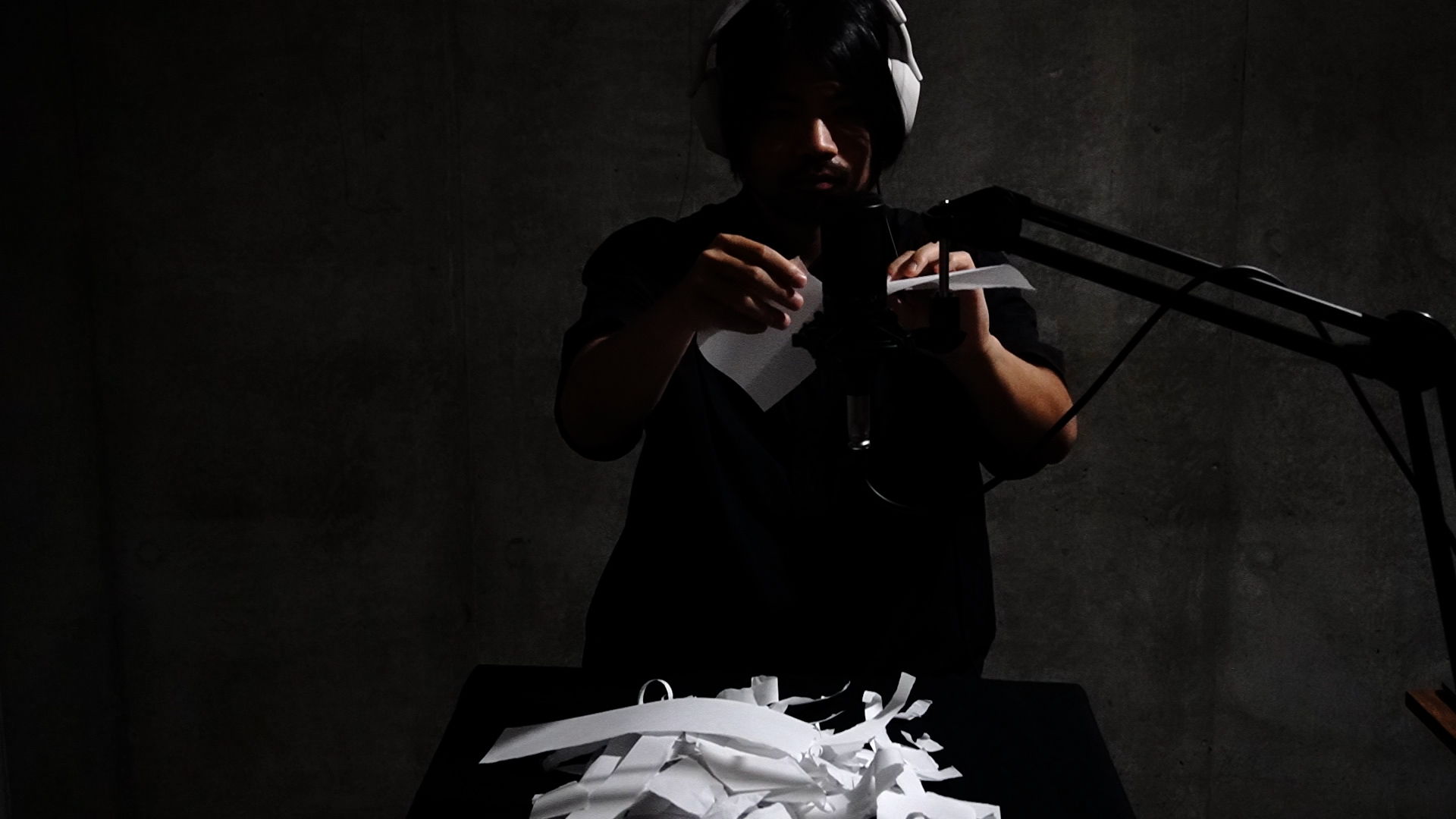 体験者はヘッドホンを装着し、1枚の紙を破ります。紙を破る読書では小説の一節を切り出して読むことになります。切り出される一節は全体からランダムに選択され、文脈を失います。読者によって読む文章は異なり、想像する物語も違ってくるかもしれません。