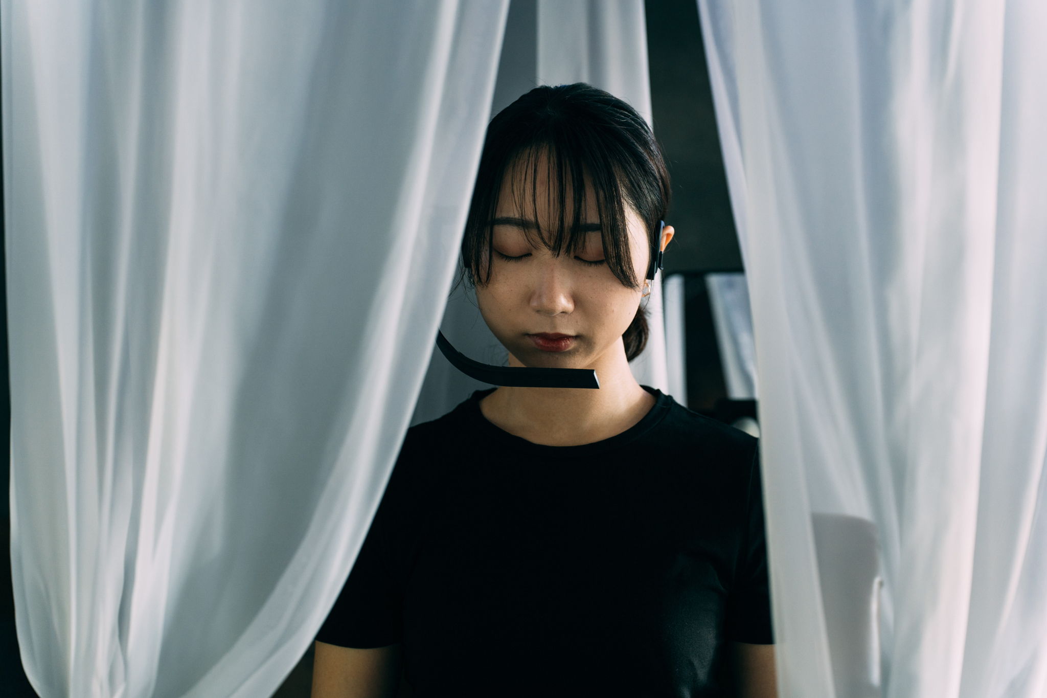私たちは、普段意識することなく、呼吸を通して窒素を体内に取り込み、また外へと放出しています。目には見えない窒素は、空気中を漂い、私たちと世界を静かに繋いでいます。本作品は、この目に見えない窒素の存在を、音で感じることができる体験型のインスタレーションです。装置を装着すると、内蔵されたセンサーが体験者の呼吸に含まれる窒素を割り出し、それを音へと変換します。呼吸のリズムや深さが、音の抑揚や強弱となって、体験者から出た窒素を音として響かせます。そして、音へと変換された窒素は、他の体験者が排出した窒素による音と混ざり合い、目には見えないけれど確かに存在する、私たちと世界の繋がりを音として体験させてくれます。展示空間では、体験者それぞれの呼吸が、他の体験者の呼吸、そして周囲に存在する窒素と響きあい、刻々と変化する音の風景を作り出します。