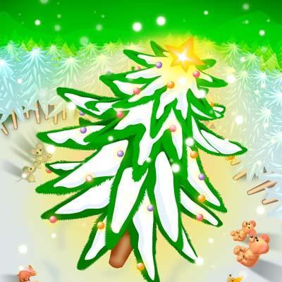 寒い寒い森の中、森の広場のモミの木が輝き始め、クリスマスツリーに姿を変えます。温かい光に誘われて、森の動物達も集まってきました。みんなで聖夜を祝っているのかも知れません。クリスマスツリーは森で仲良く暮らす動物達への、サンタからのプレゼントだったのでしょうね。