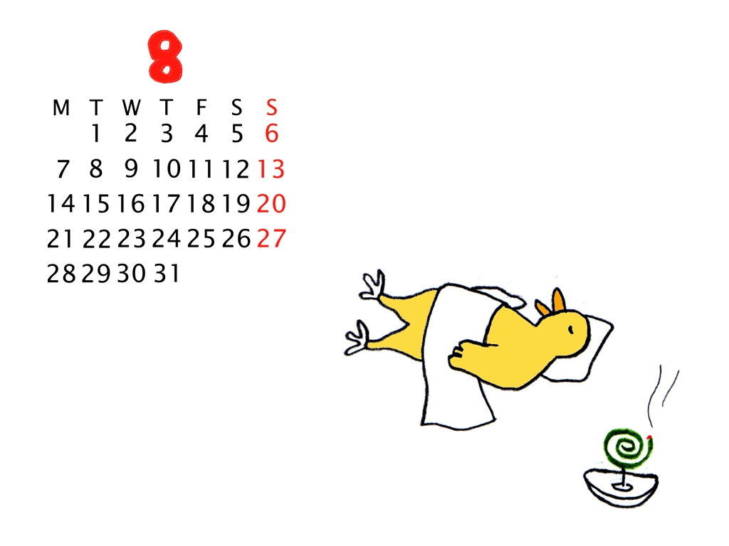 8月のカレンダーつき壁紙です♪