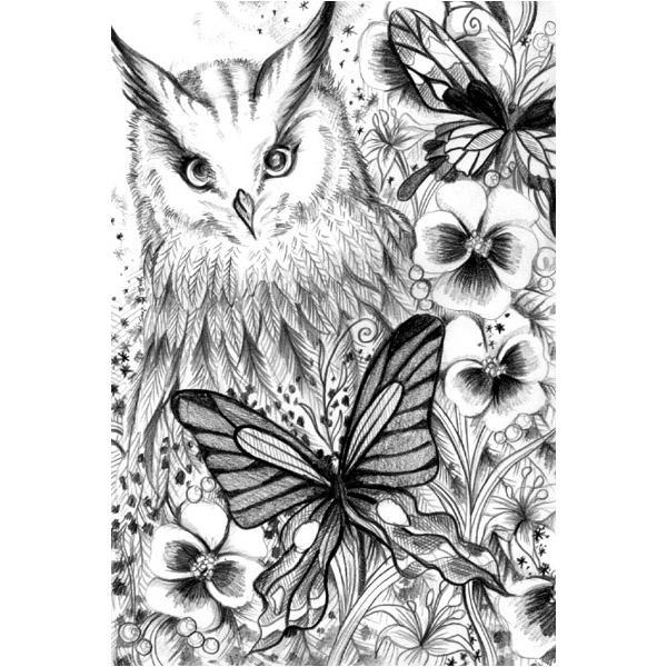 鉛筆画。幸せを運んで来てくれるフクロウ君。