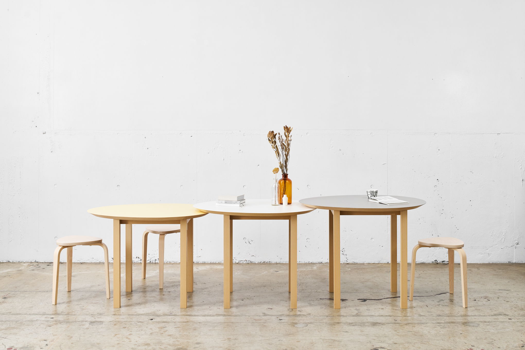 移動絵本書店のために計画された「つらなり」は、山型の什器を連ねて斜辺を持つ独自の書棚です。