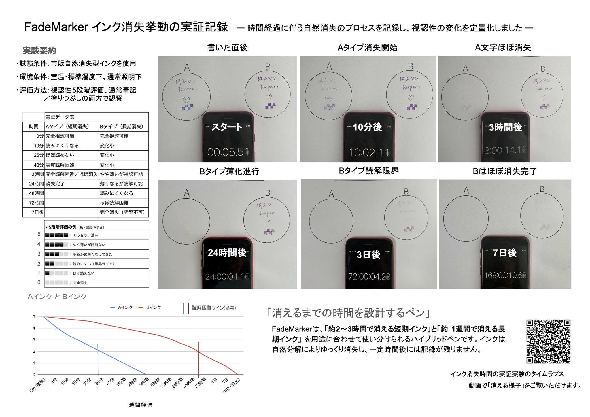 技術: 市販のチャコペンなどに用いられるインク技術を応用。時間とともに色素が分解する「FlickInk(消えるインク)」を搭載し、2〜3時間/7日間で自然消去される2種のモードを選択可能。